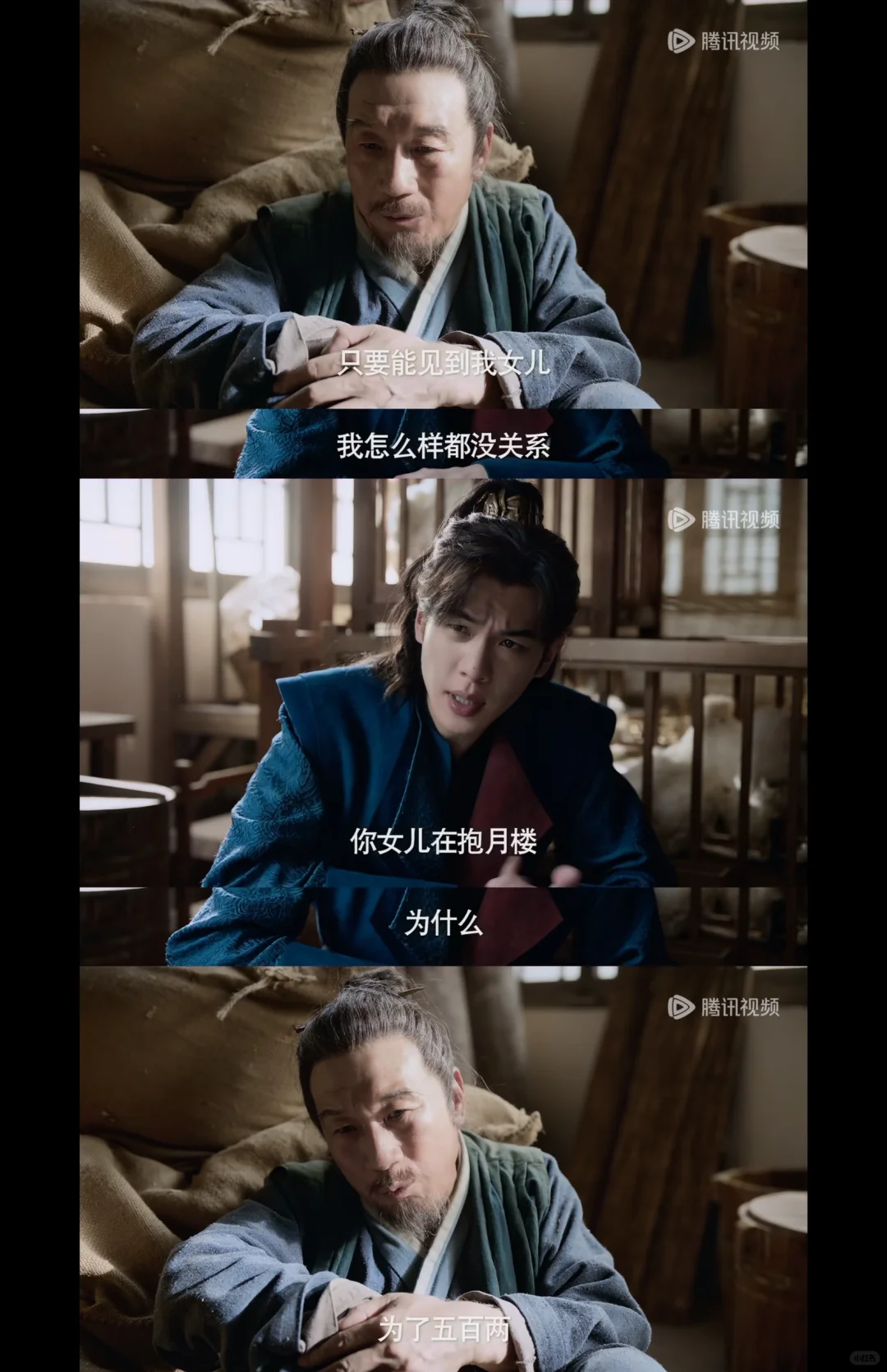 金老头的女儿为了还债把自己卖给了抱月楼,因为没有钱,金老头也进不去。