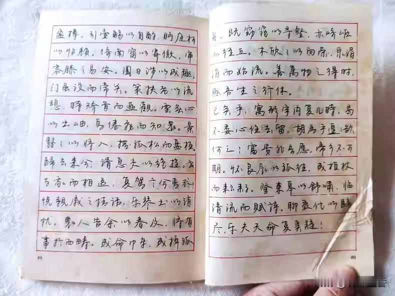 1990年的《古诗文钢笔字帖》,作者周立福,庞中华题写书名。 周立福,出生于1962年12月,湖北省书法家协会会员,曾供职于湖北省咸宁市咸安区委组织部。据介绍,其书法作品在全国书法大赛中多次获一等奖。 他的楷书确实有特点,横画轻入,字势扁平而宽博,风格清秀而硬朗,和庞中华风格并不一样。 #硬笔书法##硬笔##书法##楷书#