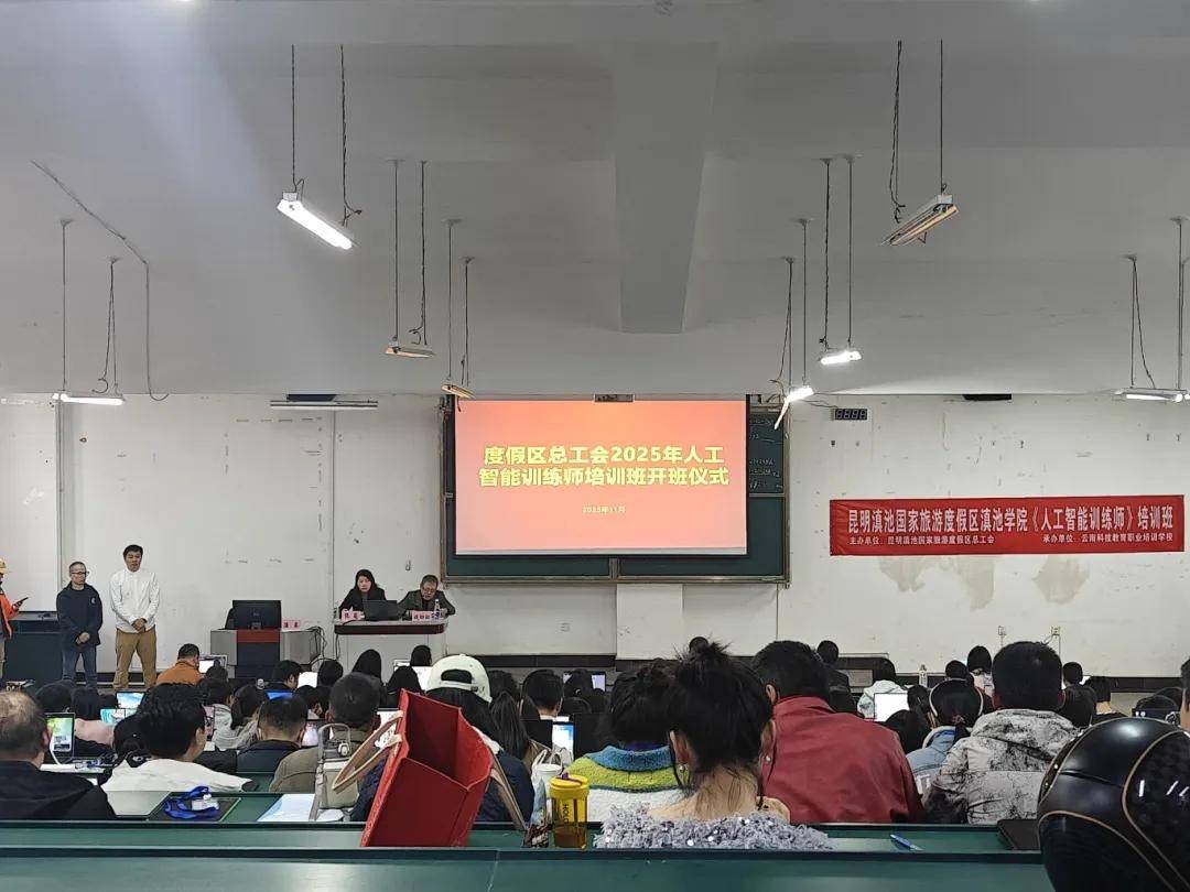 为落实《云南省工运事业和工会工作“十四五”时期发展规划》及“人工智能+”行动要求,响应工会数字化建设部署,助力度假区数字经济发展,近日,滇池度假区总工会人工智能训练师初级培训班在滇池学院(海埂校区)开班。来自各行业的172名职工学员参加培训,此次培训聚焦职工数字素养与实操能力提升,是深化产业工人队伍建设改革、储备数字化人才的具体举措。