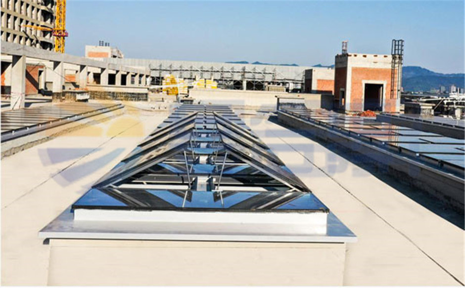 例如,对于有日常通风换气,自然采光和消防排烟功能需求的建筑可选择三角型下开式排烟天窗,圆拱型侧开式排烟天窗;如果仅对日常采光和消防排烟有需求的建筑,则可选择三角型上开式,一字型等窗型。