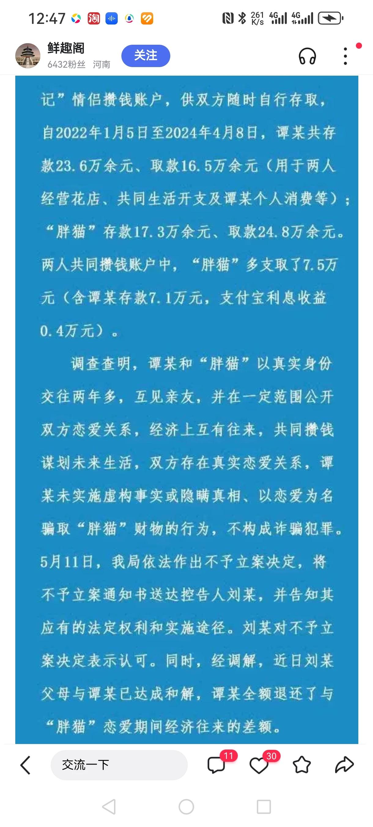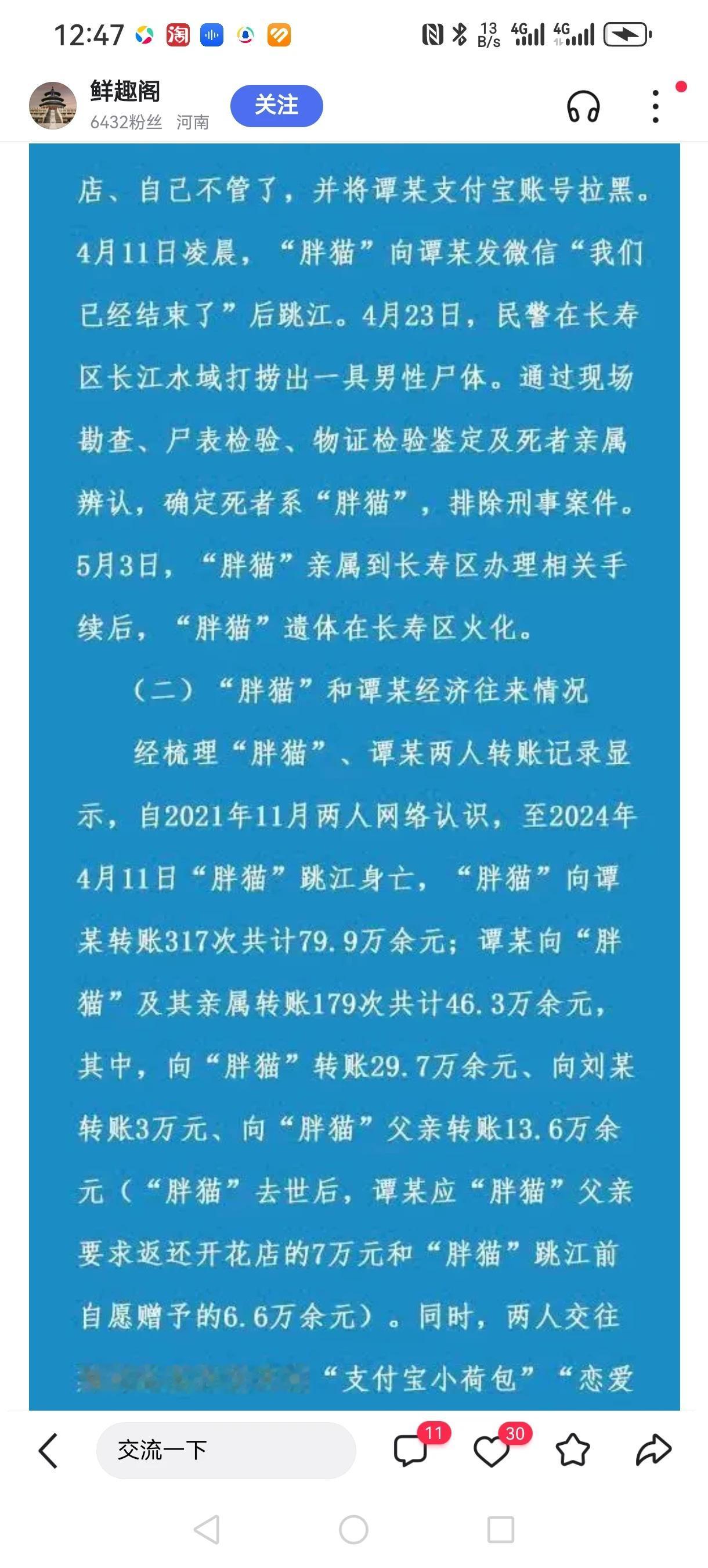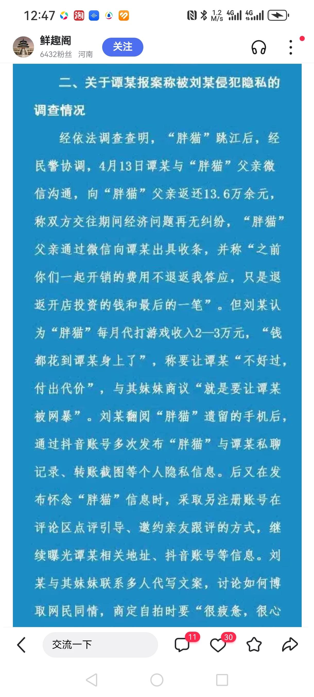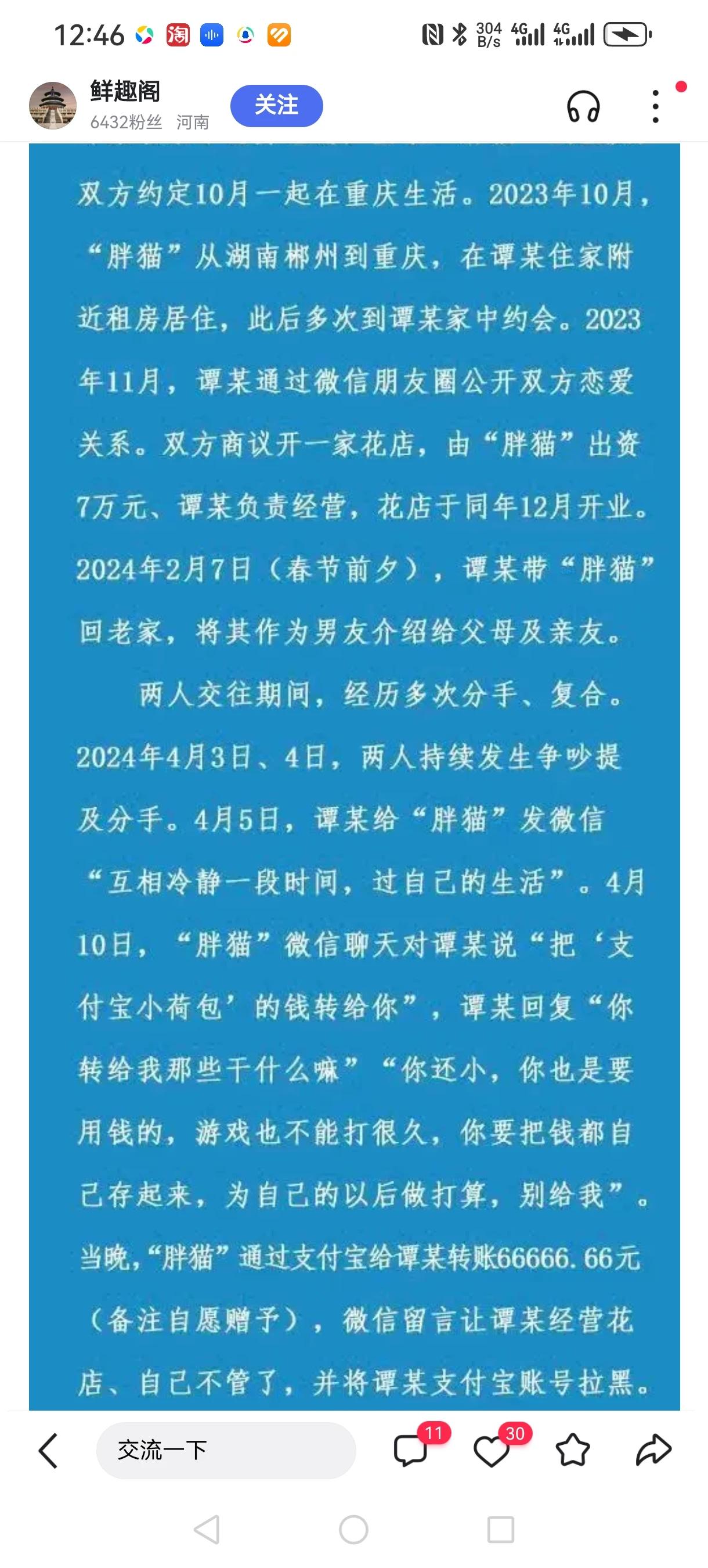 “让子弹飞一会”这句话在当下的网络舆论方面,真的快成为真理了!“胖猫”一事果然不是那么简单,警方的通报告诉我们,谭竹并不是那么不堪,双方是真恋爱。多次互见家长,在支付宝设置共同账户,双方一起攒钱,随时自由存取。可见双方确实是真正的恋爱,并且想着往组建家庭发展。 但性格不合,经常吵架,最终导致分手。胖猫接受不了,选择了跳江自杀这种极端方式。 胖猫姐姐操纵舆论,利用弟弟的死博取同情,赚流量,目前多个账号被封了。 真相会迟到,但一定会到来,吃的任何瓜,都不要忙着定性。不急,“让子弹飞一会”,打到哪真的不一定啊。