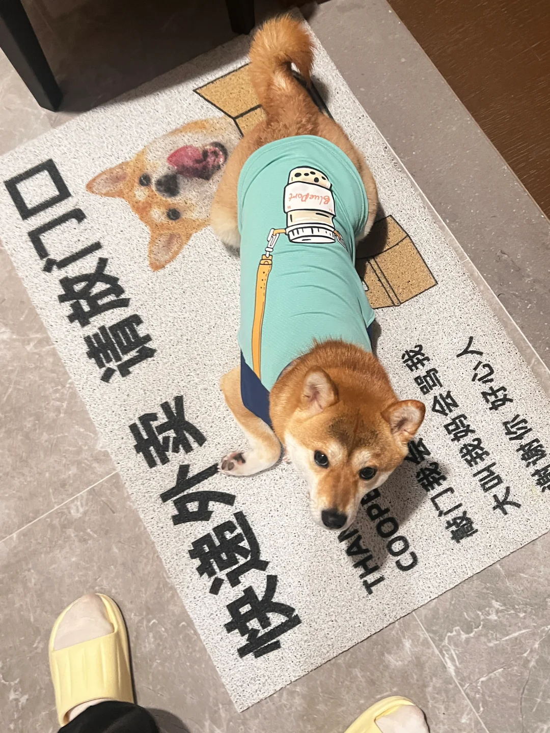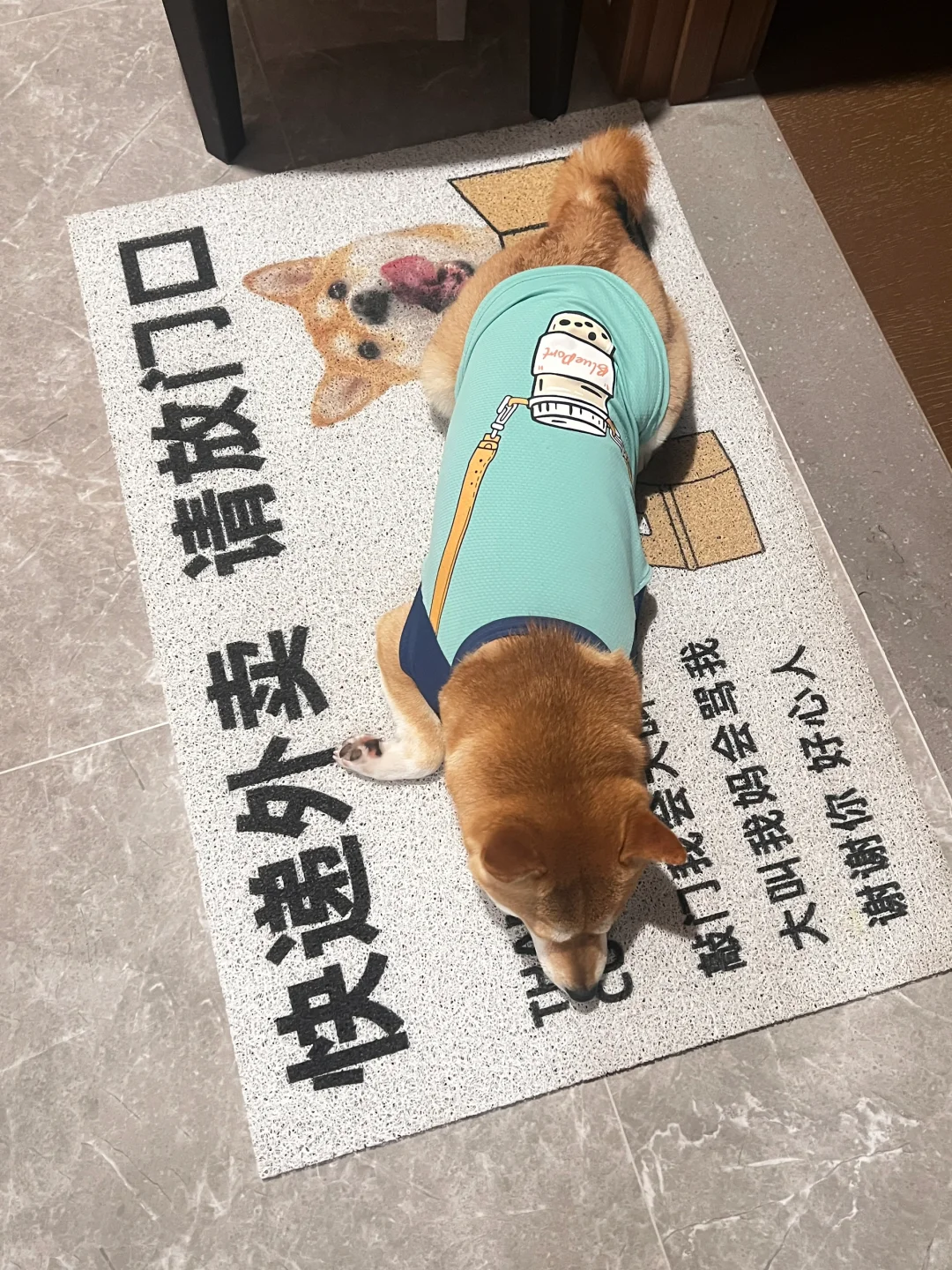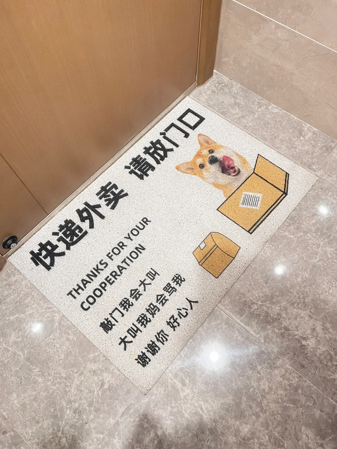 小狗实力演绎尊嘟假嘟 “快递外卖请放门口,敲门我会大叫 大叫我妈会骂我”哈哈哈哈哈小咩心声 真的好喜欢这个门垫,是粑粑买的喔!只是太喜欢了不舍得放在门外。