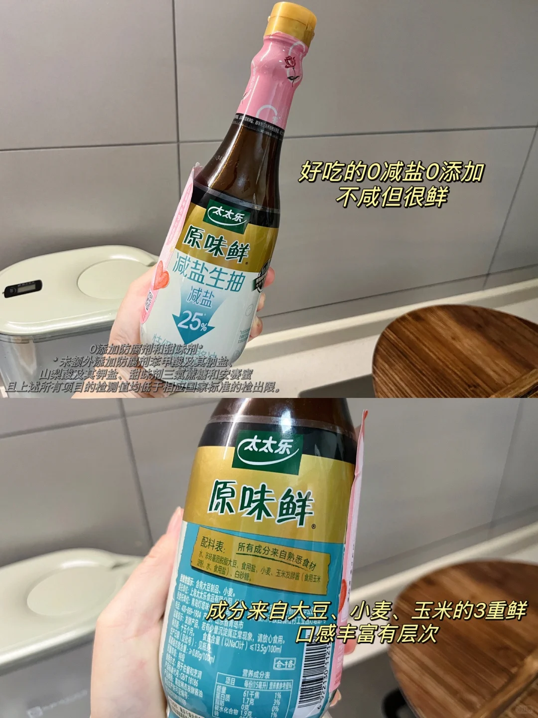 每天下厨做饭,家里用的比较费的调味品就是生抽了,这款太太乐原味鲜酱油,我每次都是两瓶两瓶的囤。好酱油口味不妥协,它源自大豆、小麦、玉米酿造的3重鲜美,口感醇厚的同时还减盐提鲜,烹饪出来的菜口感丰富有层次,平时炖肉、小炒、凉拌菜都离不开它,0添加的,减盐25%!配料表简洁,所有的成分都来自我们熟悉的食材,我儿子平时喜欢吃的酱油炒饭,酱香浓郁,用它也放心~