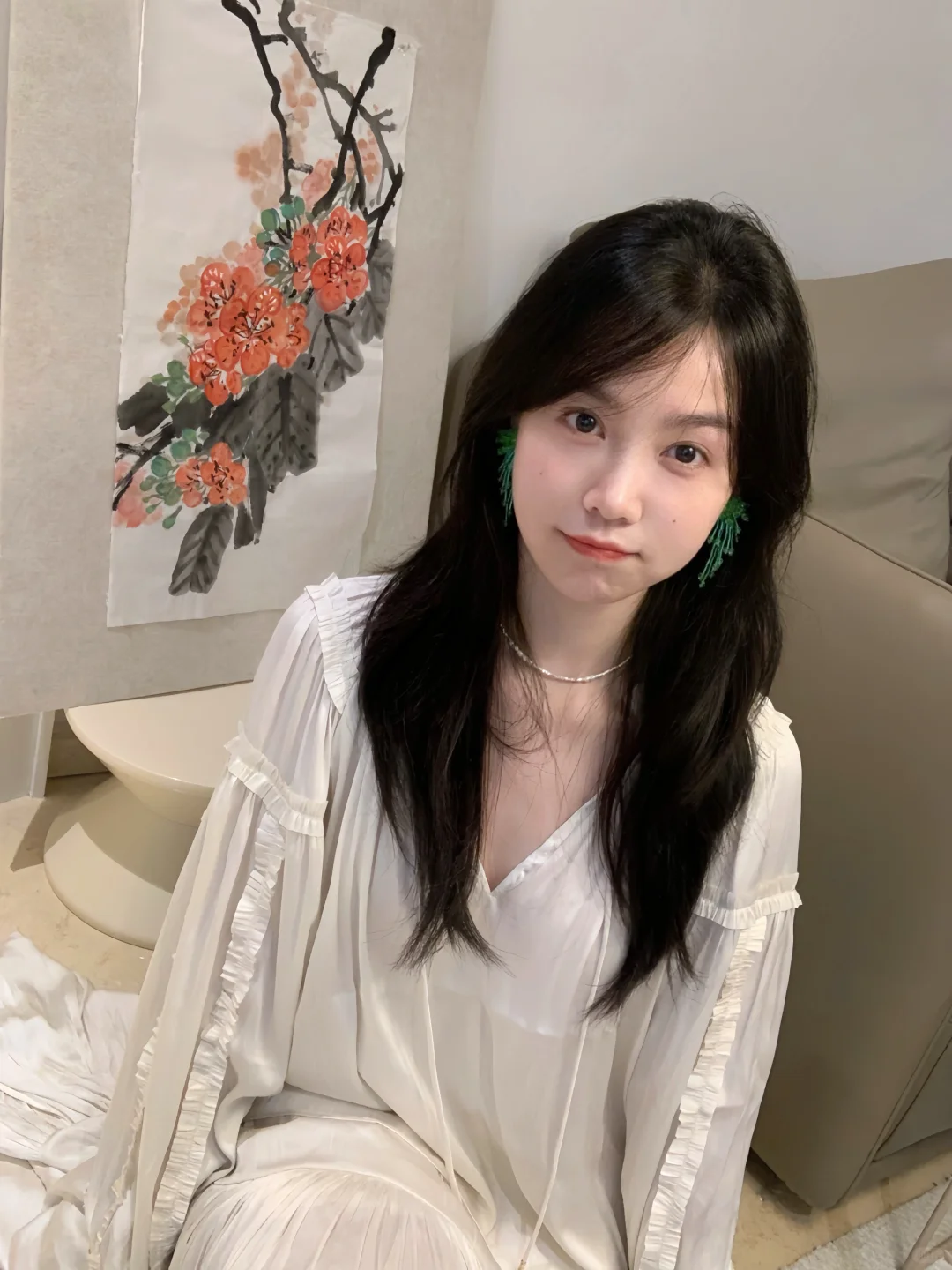 兜妹这绿色耳环又如画龙点睛之作