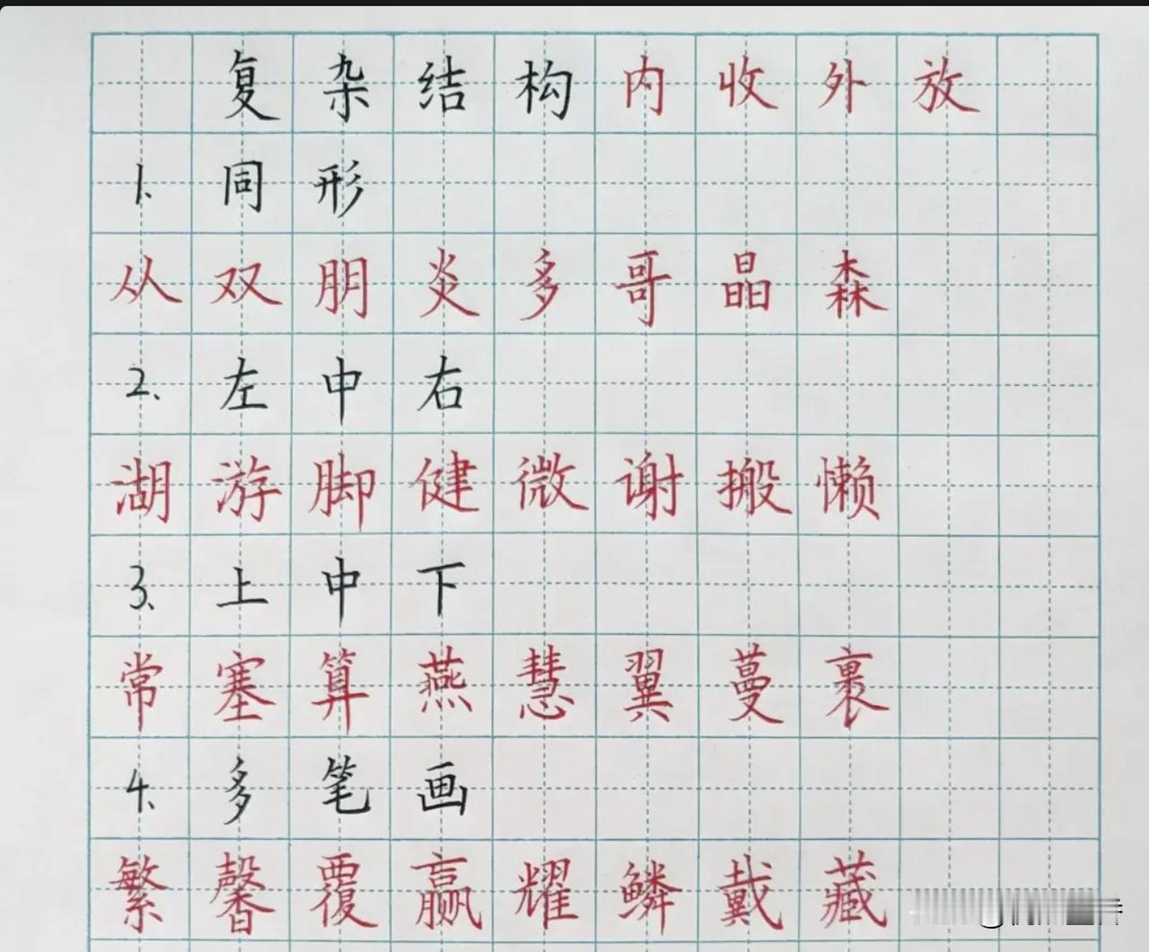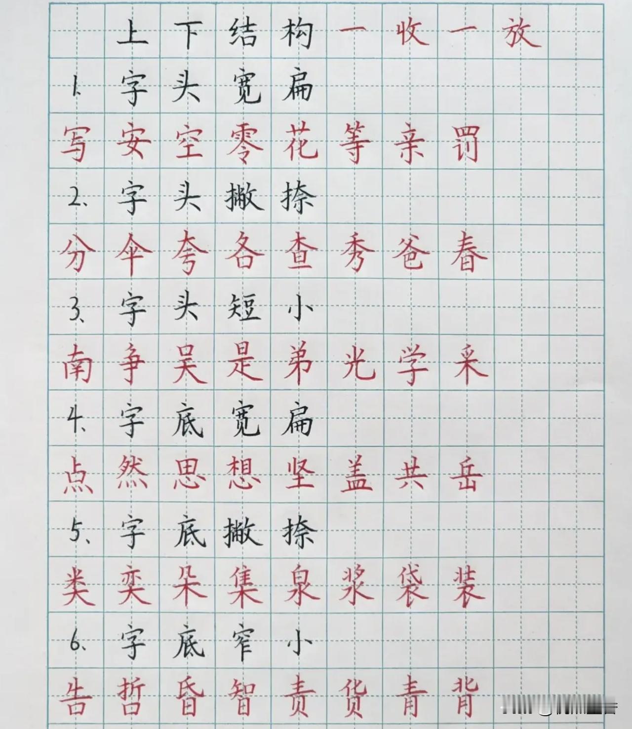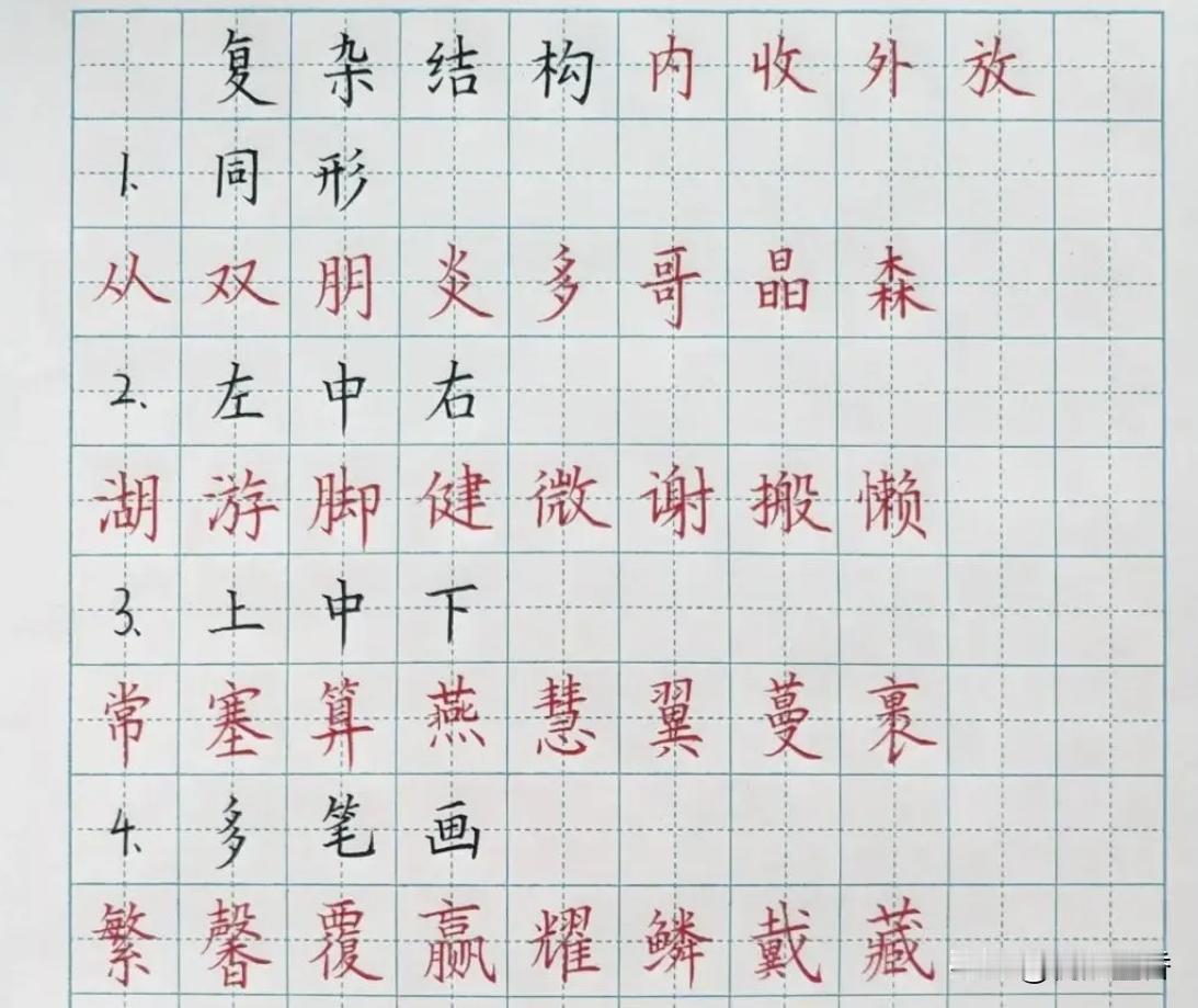 硬笔楷书间架结构规律详解,确实比较有用,记得收藏呀! 这只是一部分,应该不全,这是一些常见结构结体的总结和示例。 启功先生一直提倡,学书法要“结体为上,笔法次之”,在硬笔书法方面尤其如此,因为硬笔不像毛笔那样有丰富的笔法,结体相反要求更高,如果结体不好,字肯定就写不好了。 #硬笔##硬笔书法##书法##楷书#