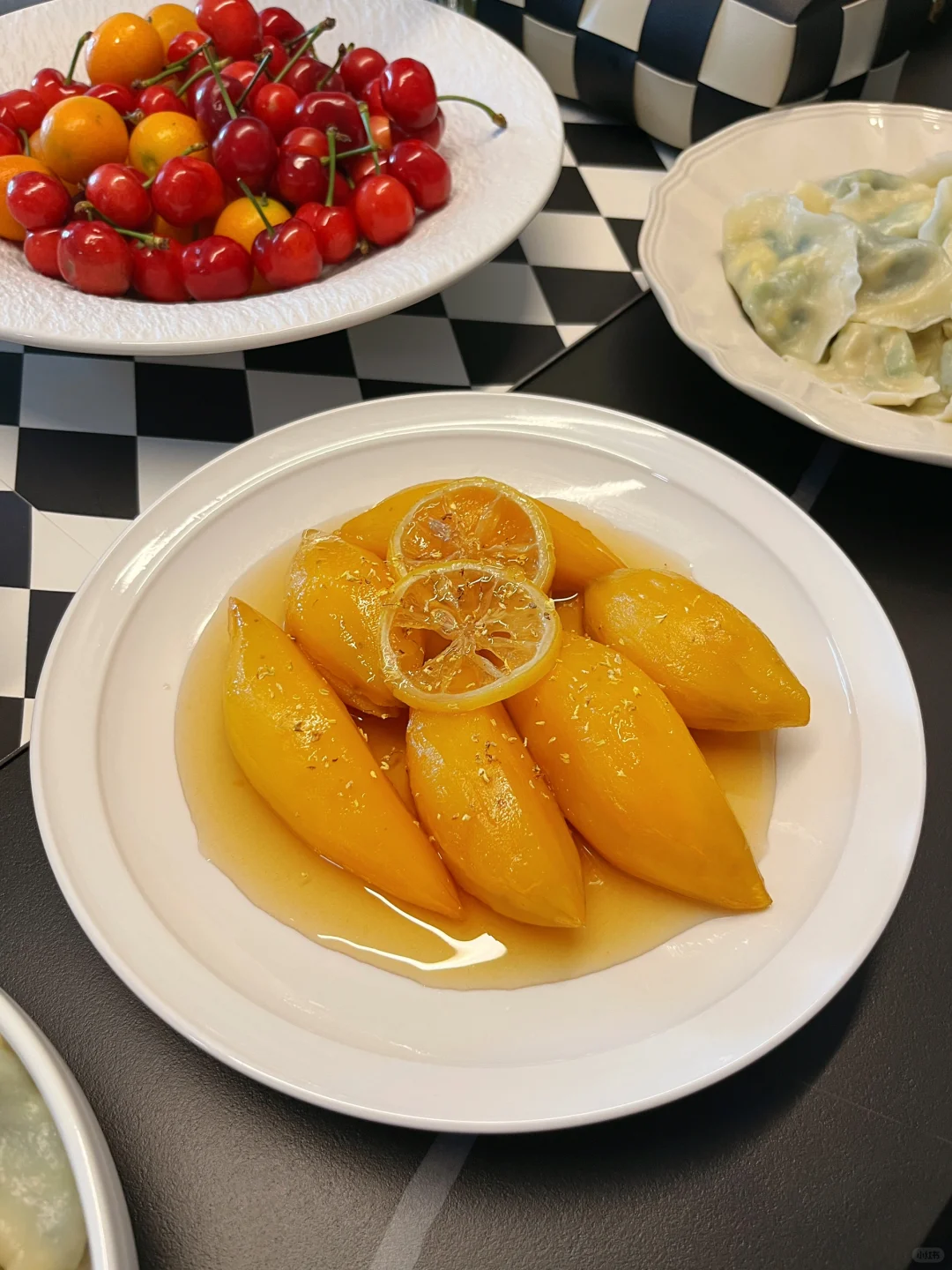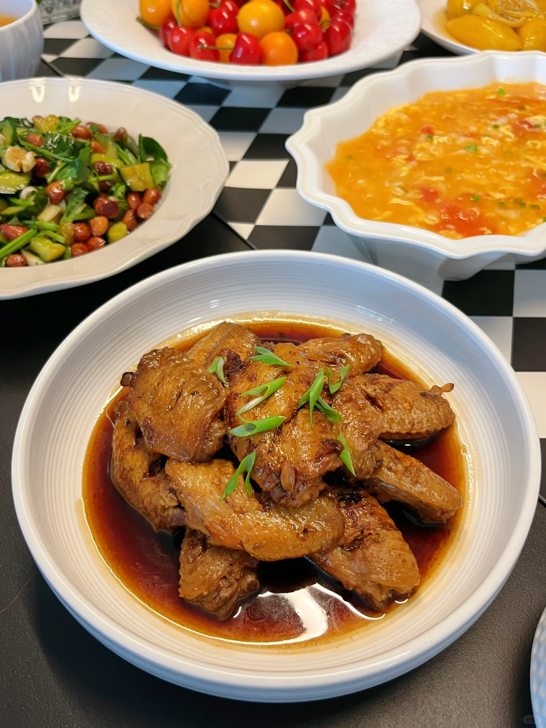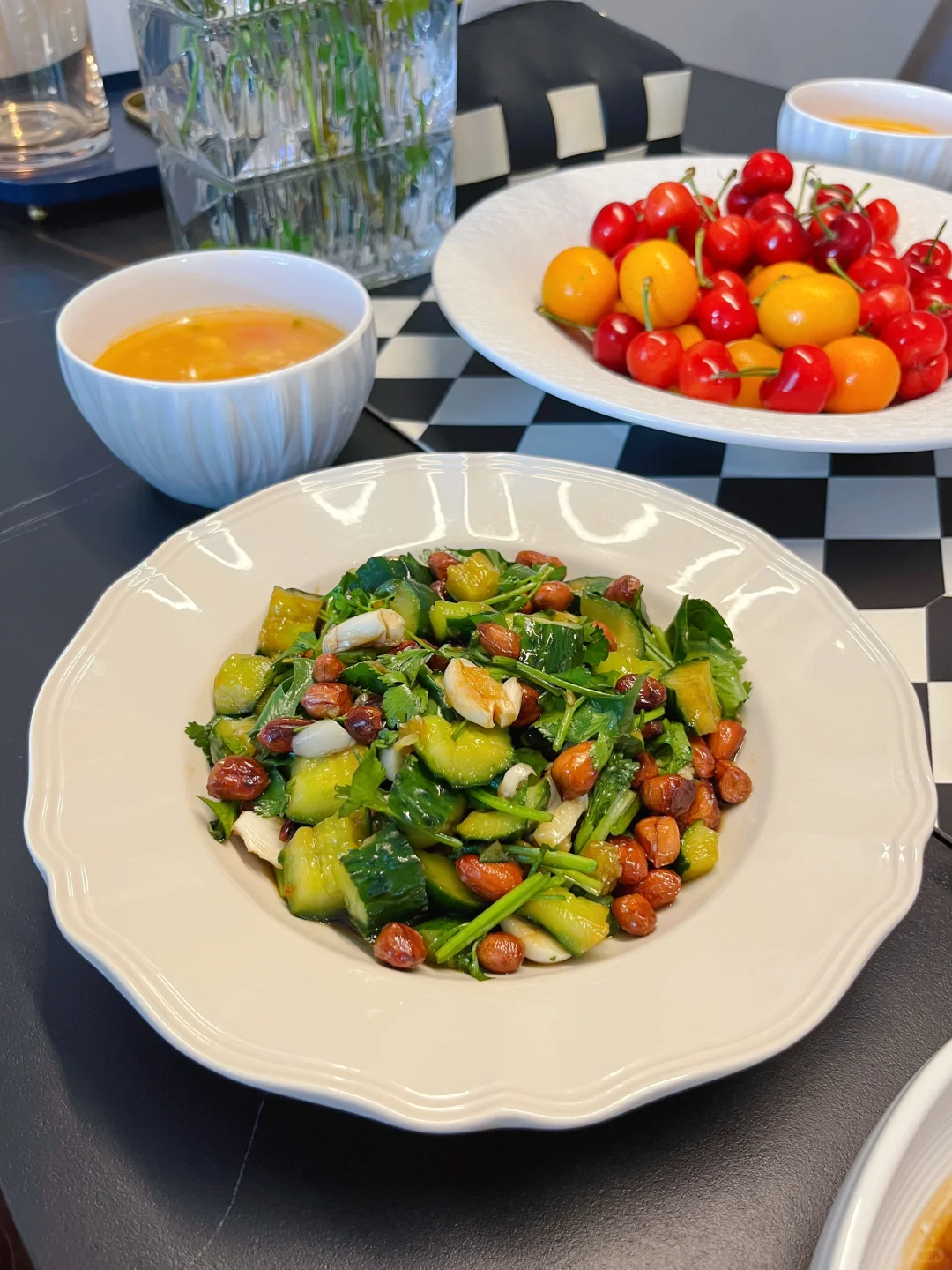 在婆婆家的小菜园里收了很多绿色蔬菜回来~ 韭菜,生菜,小葱,小白菜,水果萝卜…… 婆婆又新种下了黄瓜[黄瓜R]西红柿[桃子R]豆角,期待过段时间的大丰收~ 回来后,小葱炸了葱油 留着最近拌面吃, 韭菜做了韭菜盒子,韭菜鸡蛋水饺,真的是太喜欢这口了,那叫一个鲜~根本吃不够 菜单: [一R]韭菜鸡蛋饺子 [二R]疙瘩汤 [三R]可乐鸡翅 [四R]糖醋花生 [五R]蜜汁红薯