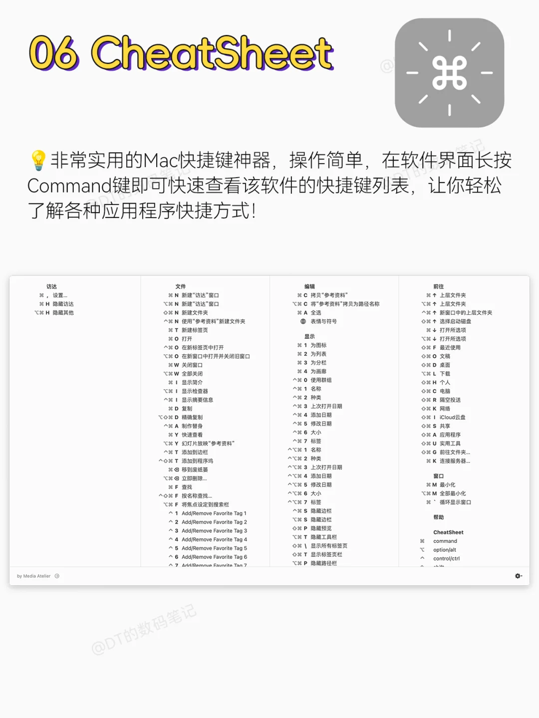非常实用的Mac快捷键神器,操作简单,在软件界面长按Command键即可快速查看该软件的快捷键列表,让你轻松了解各种应用程序快捷方式!