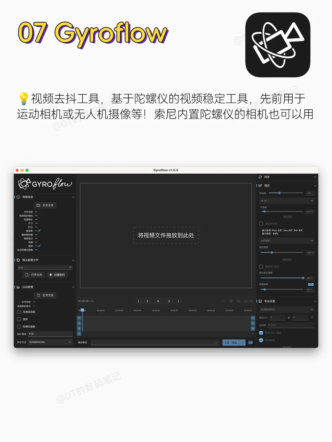 视频去抖工具,基于陀螺仪的视频稳定工具,先前用于运动相机或无人机摄像等!索尼内置陀螺仪的相机也可以用!
