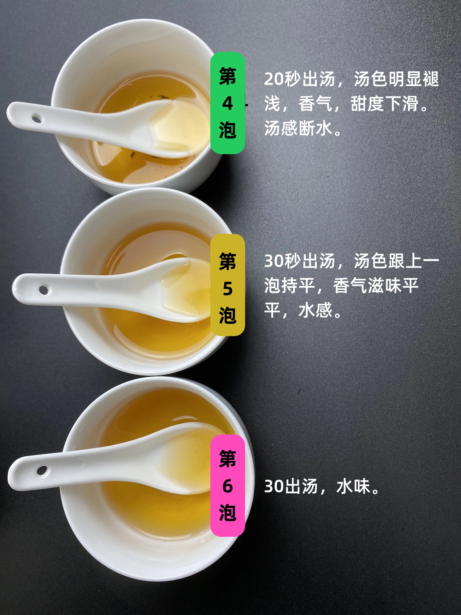 第四,20秒出汤,汤色明显褪浅,香气,甜度下滑。汤感断水。