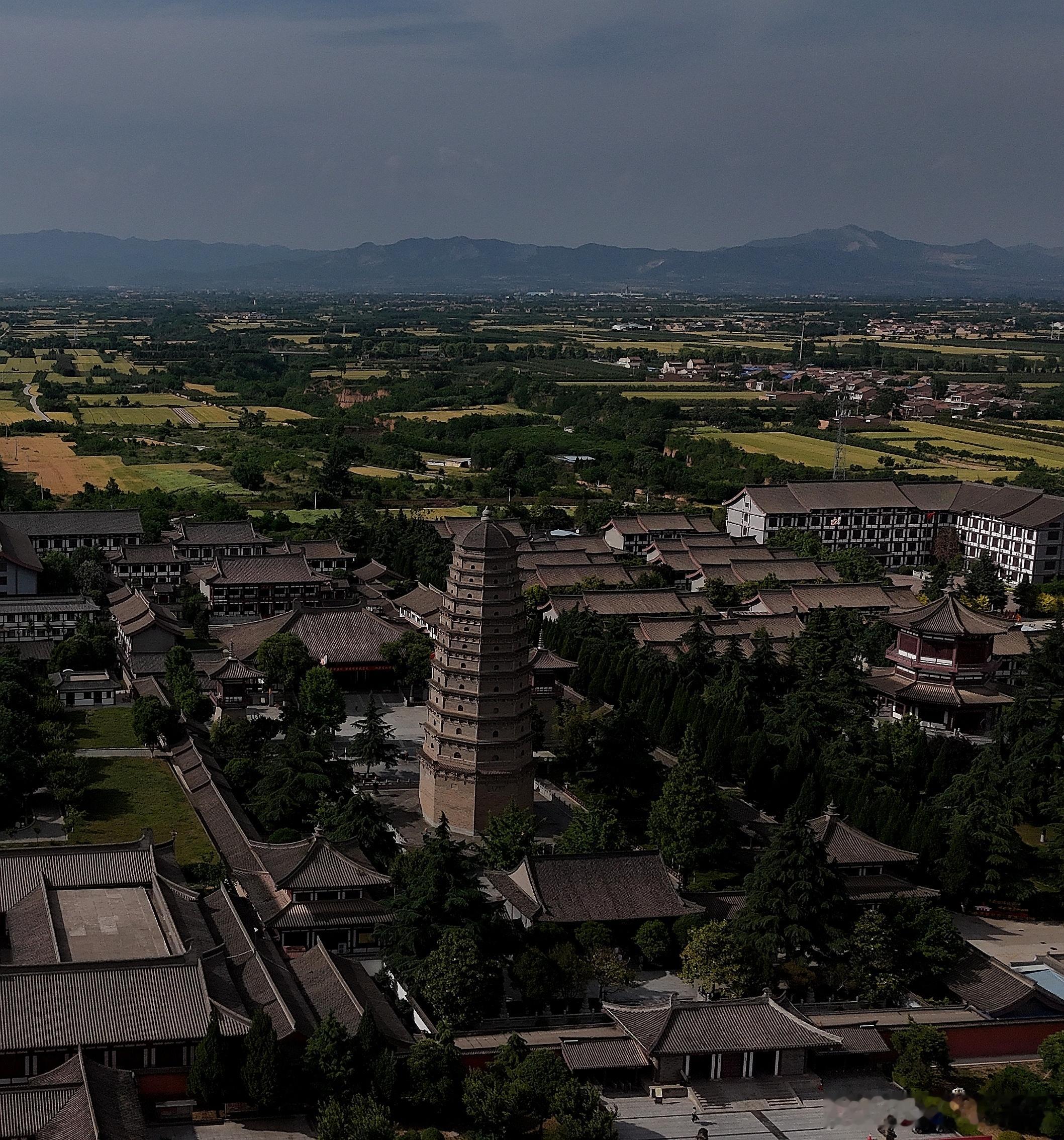 第六批全国重点文物保护单位。始建于东汉末年,因舍利而置塔,因塔而建寺,原名阿育王寺,唐高祖时改为法门寺,是一座皇家供养寺院,塔院布局延续至今。唐皇室曾七次开塔迎送佛骨并供奉大量财物。1987年在重修半边倒塌的寺塔时,清理唐代地宫时出土大量珍贵文物。