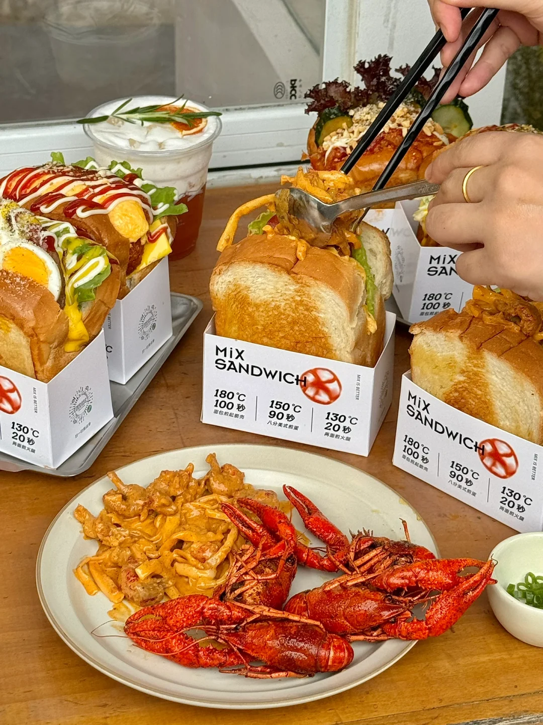 3天去2次了😭三明治尊嘟好香!口味ju多!!小🦞味和韩式烤肉都很🉑!还有果味特调也好好喝!!