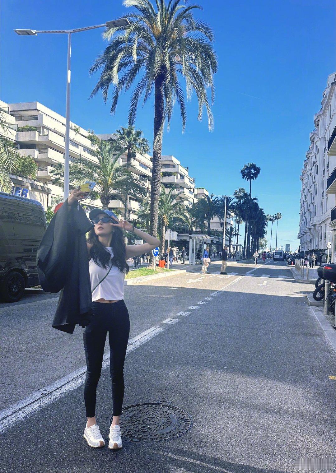 #杨幂戛纳街拍# 杨幂下班打卡!阳光下的幂幂好美~欢迎回家啦[送花花]