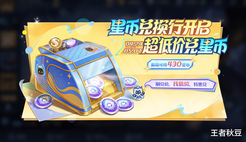 活动时间4月24日-5月7日,活动期间每日登录可直接获得专属随机星币兑换价格,刷新兑换价格和使用他人分享的兑换码,都可以以超低的价格兑换星币。活动期间最高可以限时兑换420星币,分享码被使用额外获得10星币,最高就是一共可以获得430星币。