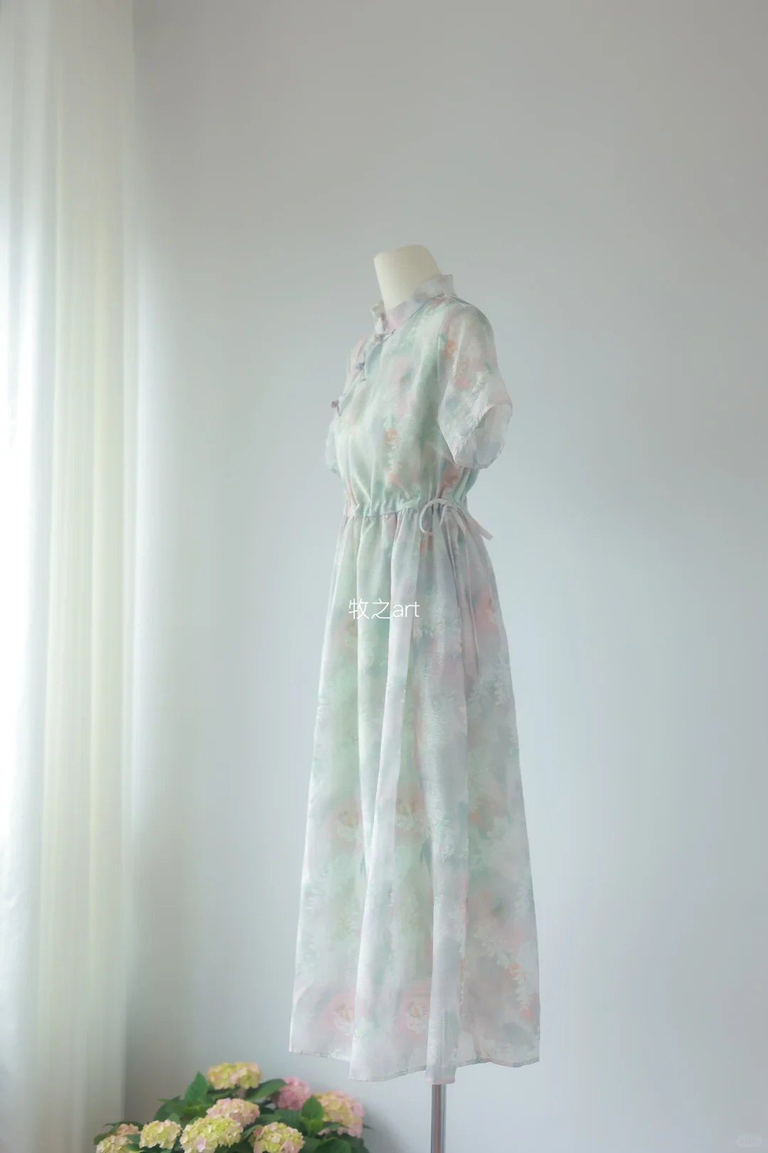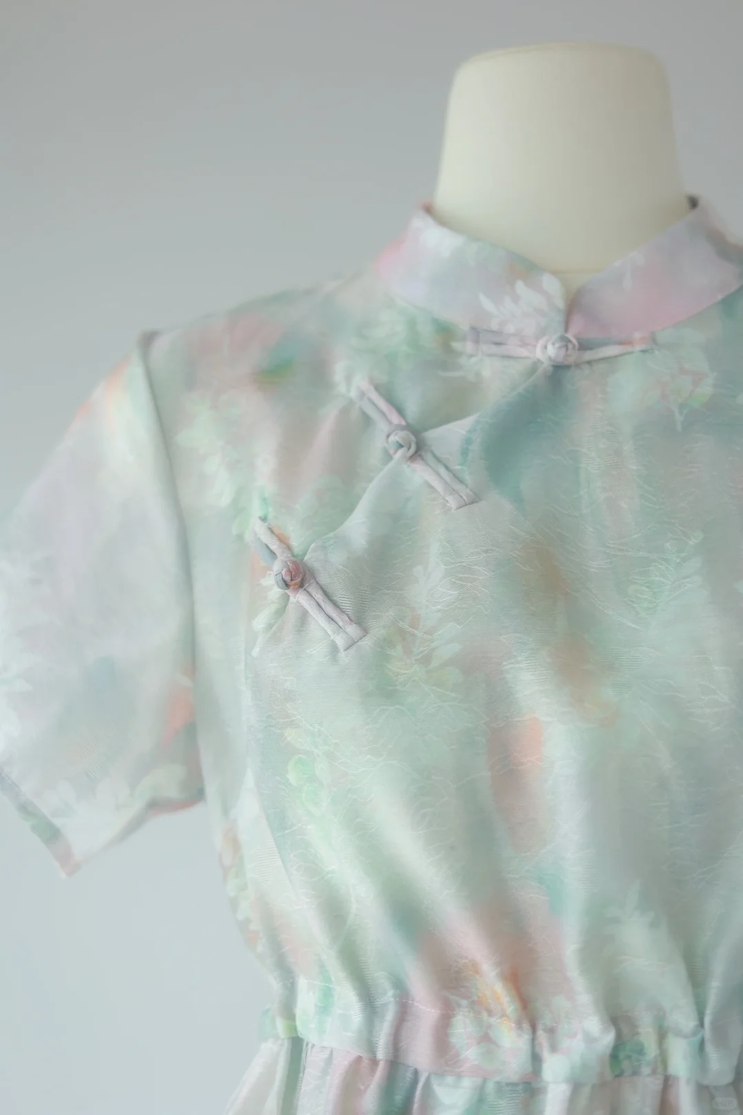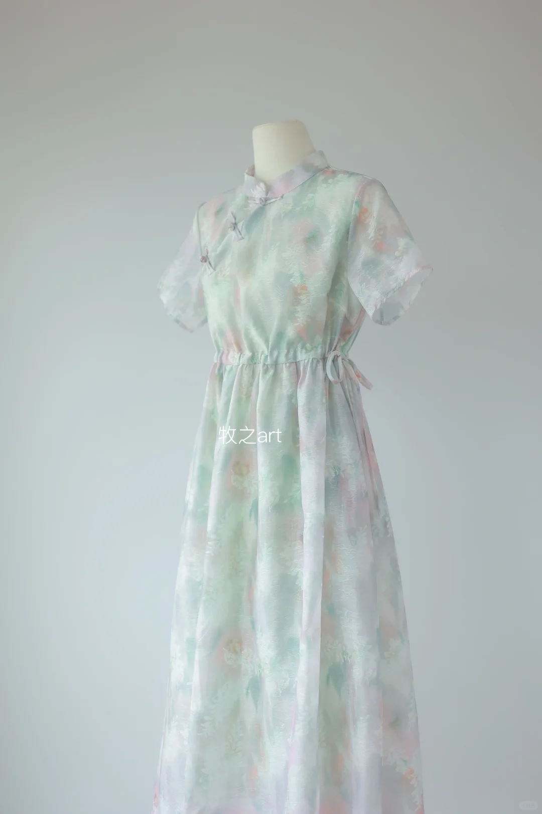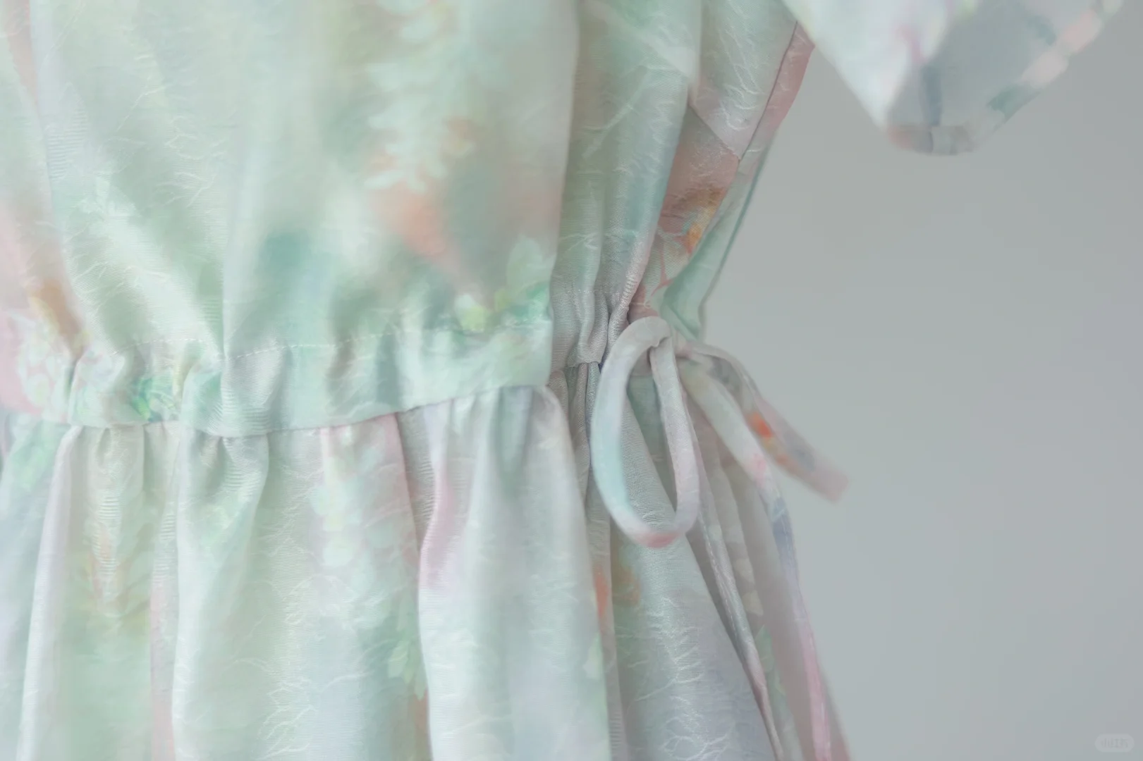 中式元素真的能将女孩子们的温柔展现的淋漓尽致 特别是在淡雅的颜色的映衬下 印花和提花有设计感 腰间抽绳绑带可以自己调节 喜欢宽松系松些,或者带子直接不系,自然垂落 想要腰部显更细,就贴着腰部留放松量系 -