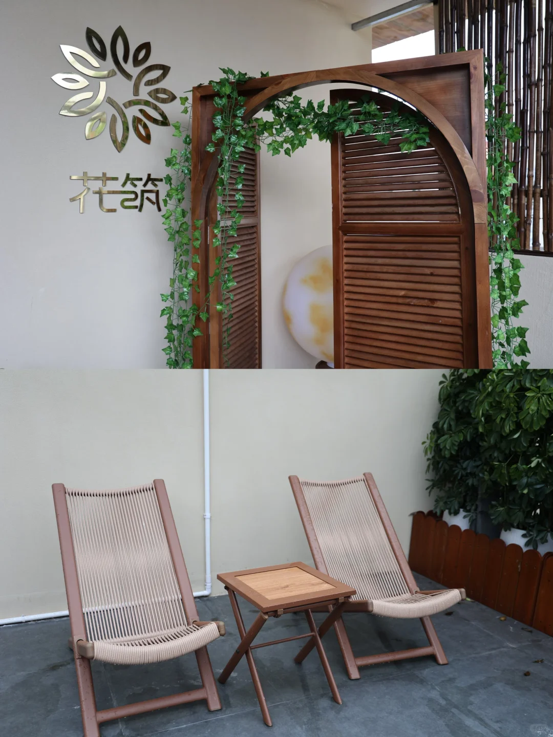 🏡 民宿是独栋小楼,坐落在长沙特有的老街小巷里。院外是熙熙攘攘的黄兴广场步行街,院内绿树环绕,遮阳伞,小竹椅,诗句组成的景观灯💡点缀其间,别具雅致。