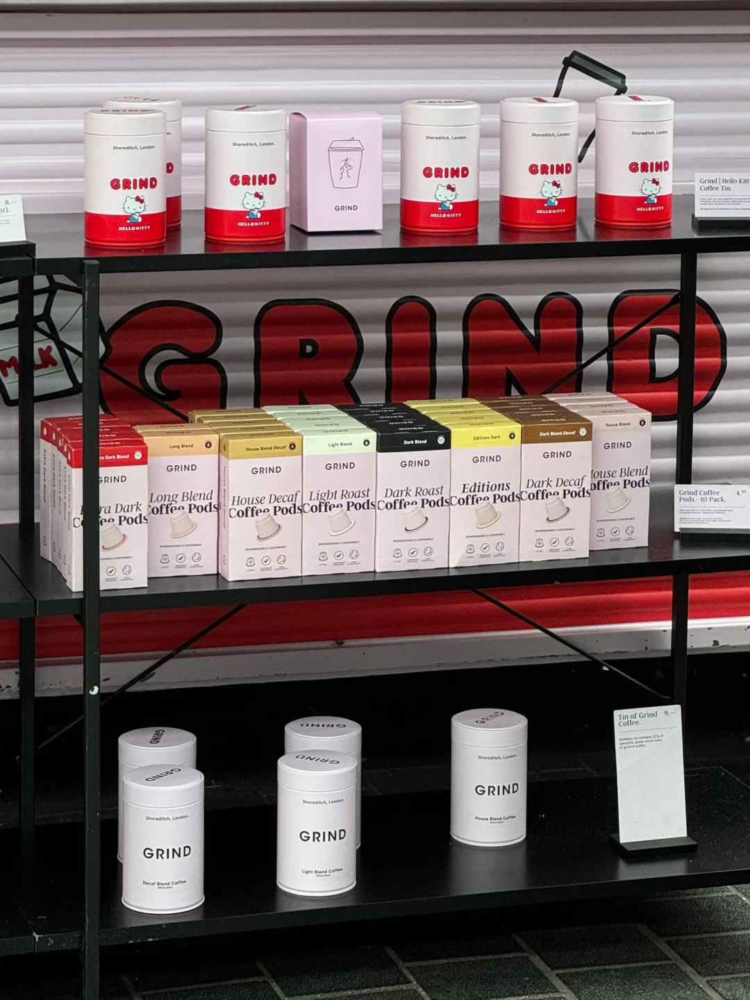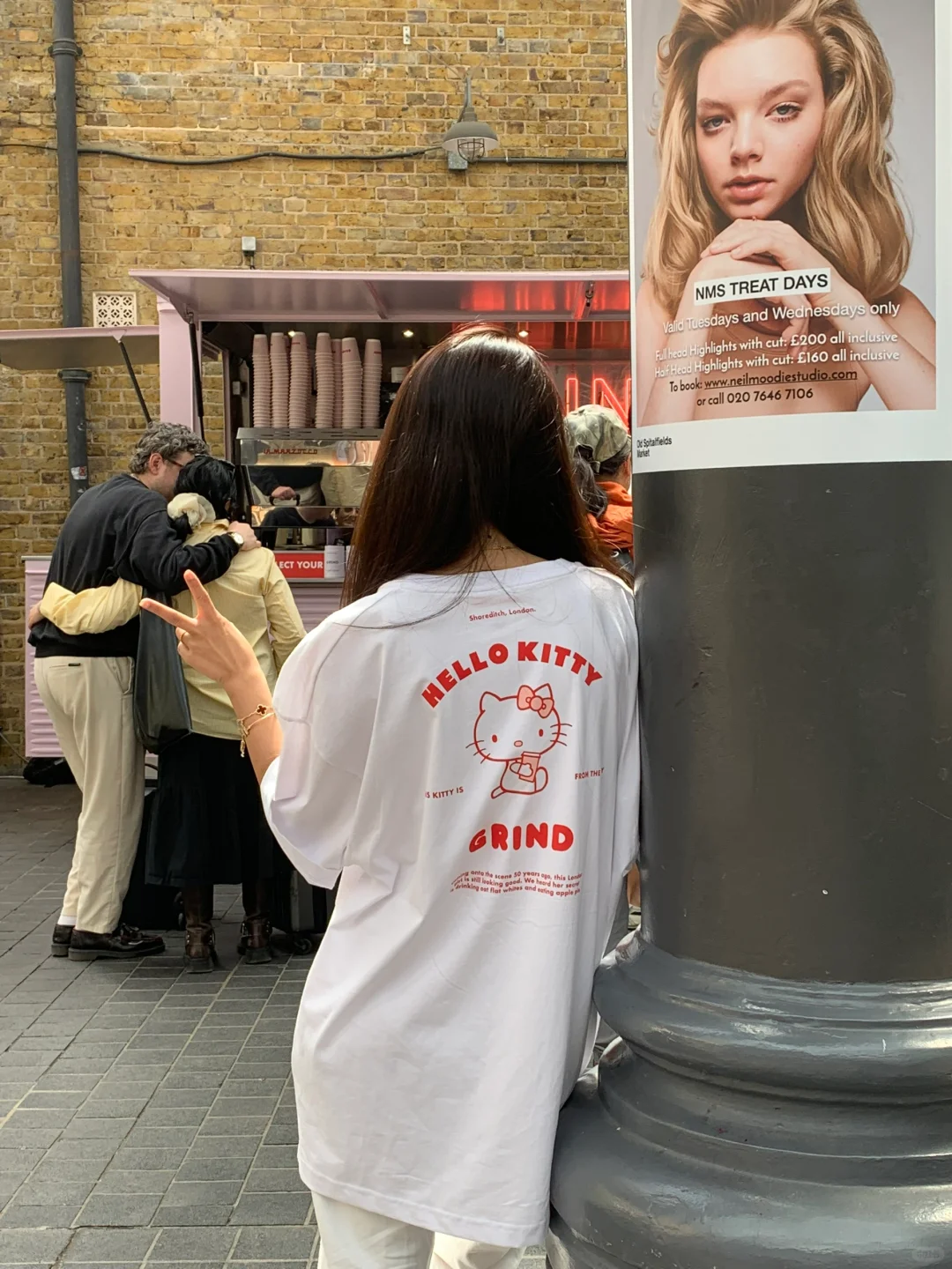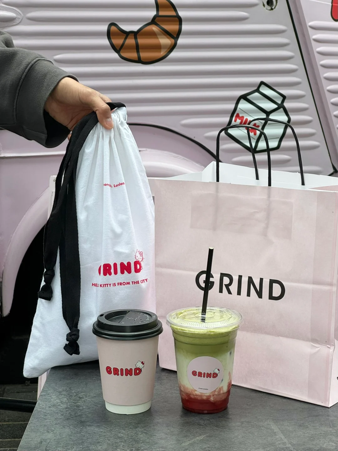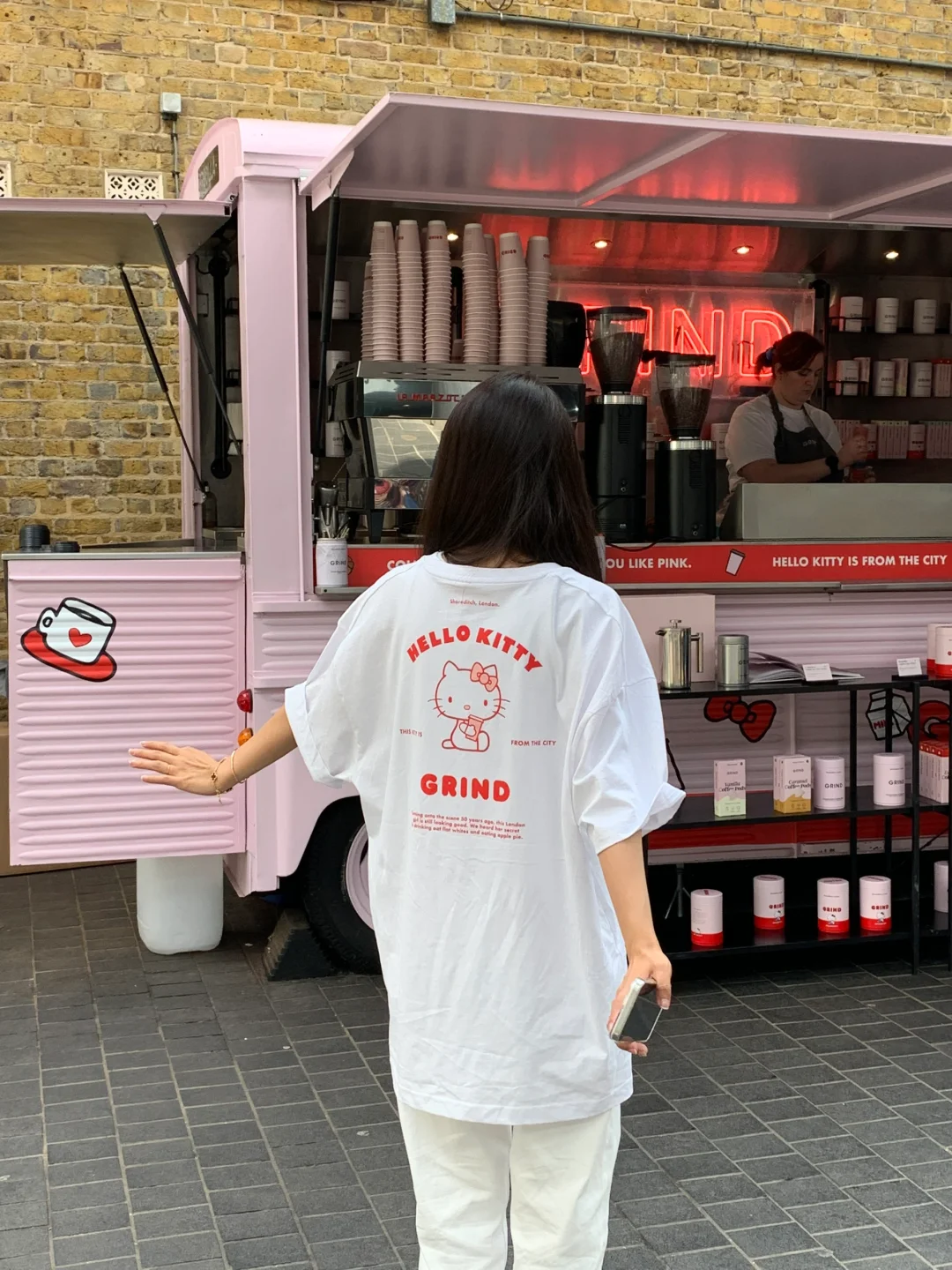 Grind和Hello Kitty的联名真滴好可爱! Strawberry Matcha也挺好喝的🍵🍓 买走了最后一件tee👔2xl直接当裙子了[doge]