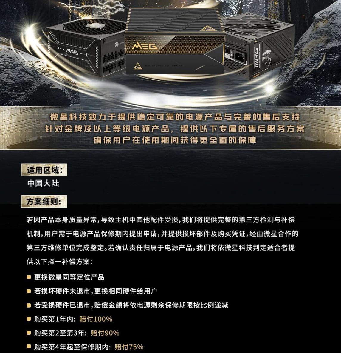 微星同时重申,其金牌及以上认证电源均提供因电源故障导致其他设备损坏的索赔服务。