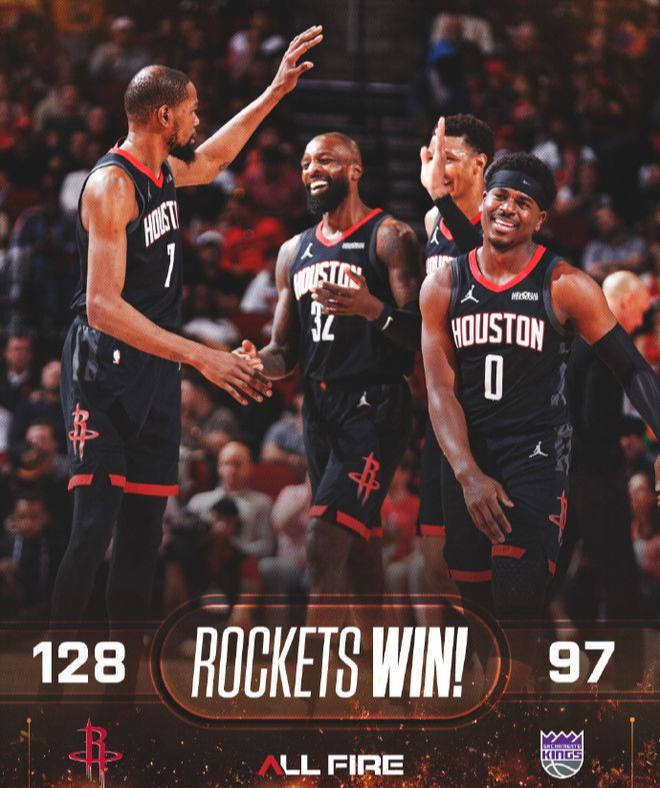 霍乐迪同样高效地4投3中得到7分2篮板3助攻,老将格林也有外线得分,全队11人登场全部都有得分进账,可谓是皆大欢喜。最终火箭 主场以128:97大胜国王完成复仇,并取得2连胜稳固了西部第三的位置。