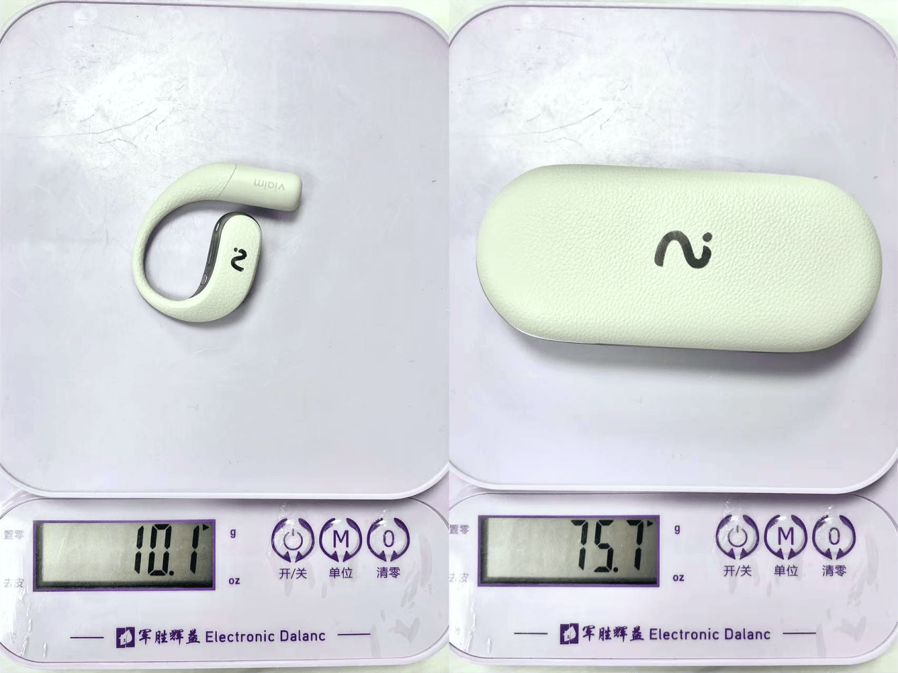 科大讯飞Air2在佩戴设计上同样下了不少功夫。它采用了黄金配重比设计搭配0.8mm的液态硅胶韧性记忆骨架,让耳机在贴合耳部时有一定的柔韧性。单耳重量10.5g,整体重量达到75g,虽然日常佩戴依旧稳固,但相比轻盈型的开放式耳机,长时间使用时可能会产生轻微的压迫感,尤其是耳廓较小的用户更容易感受到这种重量差异。实测在短时间通勤中佩戴舒适度问题不大,但在长时间会议或运动中,舒适度表现略逊于西圣Olite2。