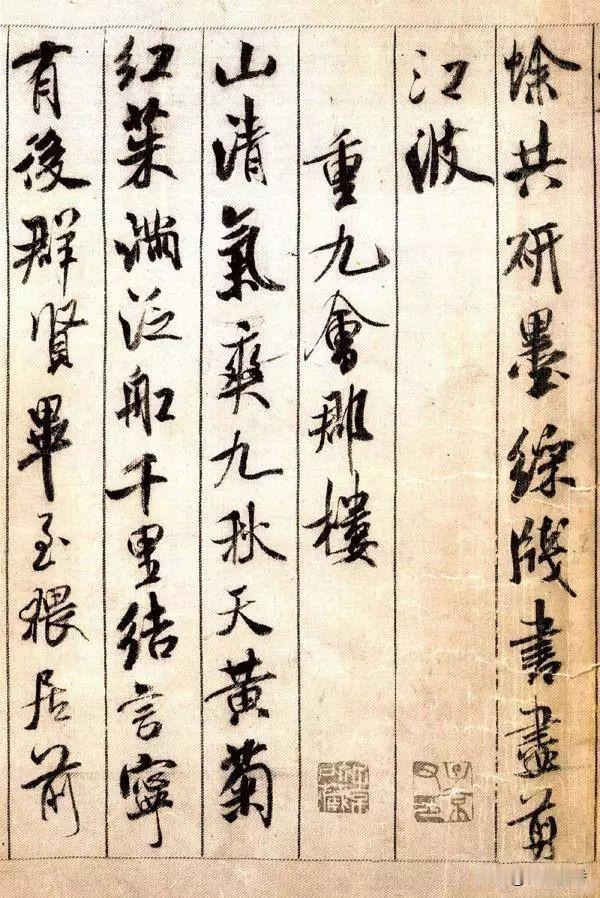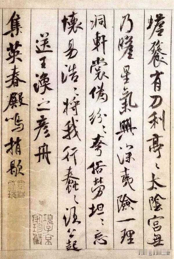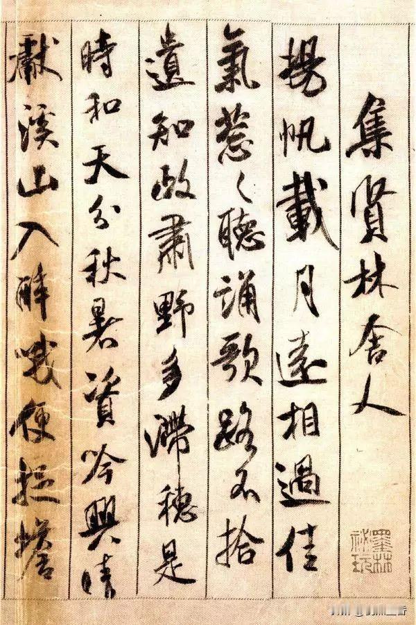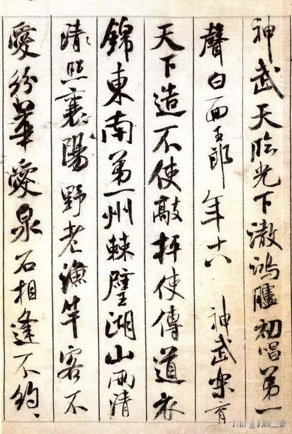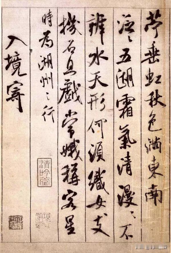 经典不死呀!米芾的行书《蜀素帖》,学米字千万不可放过!! 《蜀素帖》作于元祐三年(1088年),其时,米芾才37岁,正是风华正茂的年纪,他的书法创作异常活跃,可以称得上“日刷一万字”。 作品不是一般的宣纸所书,而是书于一种特制的绢本(雅称“蜀素”)上,其吸墨、墨迹扩散均和宣纸不太一样,写出来的字的风格也就不同。 而作品内容均为米芾自作诗,主题是游记和别离方面的诗作,别忘了,米芾的文化才华也是很厉害的哟,不是现在那种“字匠”。 这件行书字,笔法跳荡精致、结体变化多端、笔势沉着痛快,整体风格天真烂漫,被世人称为米芾最经典的行书代表作,也被誉为“天下第八行书”! 作品还有一大看法, 就是历代题跋之多,之精美,令人惊讶。像祝允明、董其昌、王衡、沈周等书法大家都题跋赏玩,这些题跋的书法也是与原作相辉映。 #米芾##行书##书法##毛笔书法##宋朝#