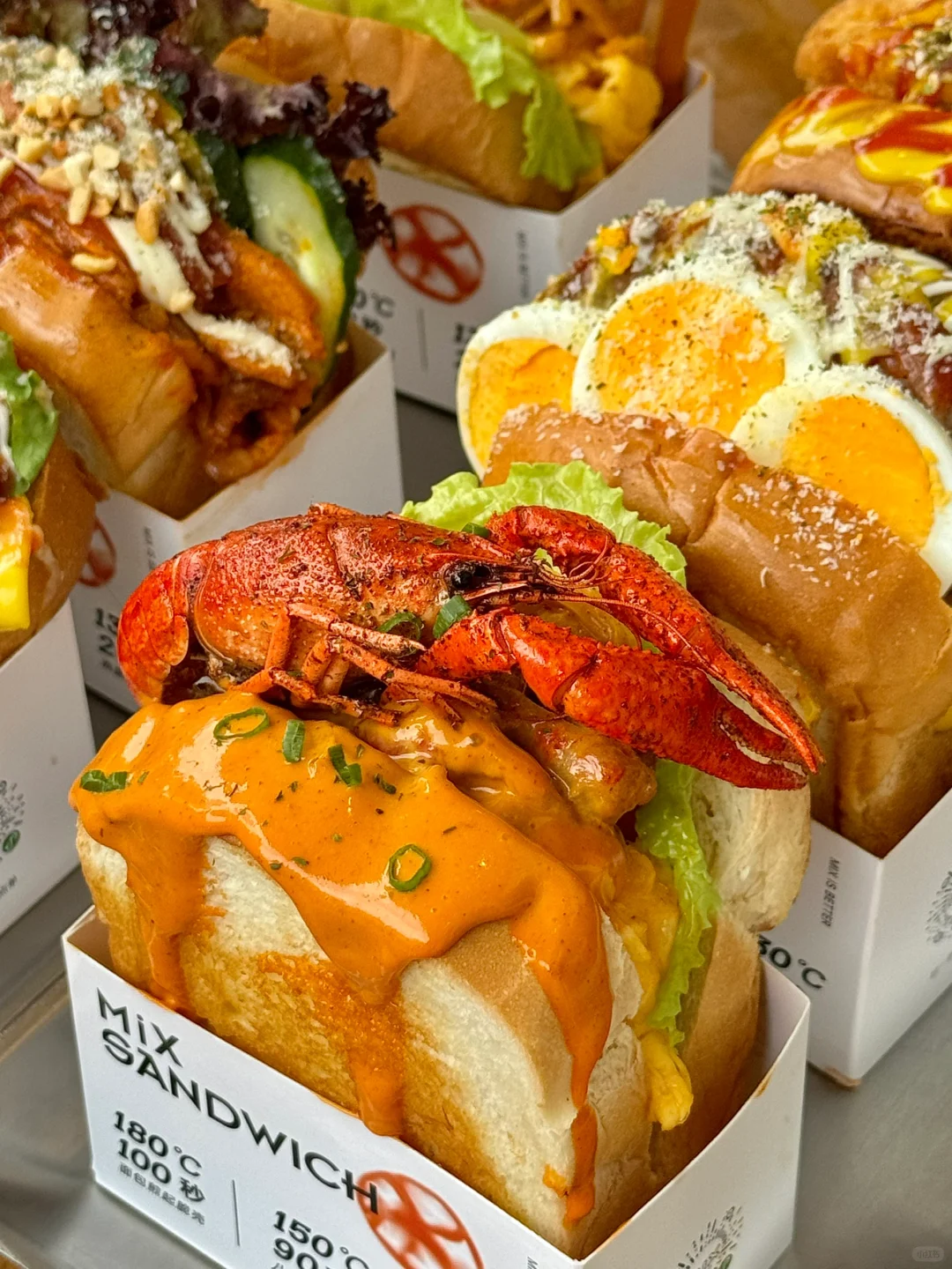 呜呜呜每个三明治都吼吼吃[哭惹R]!料好足!竟然还上了🦞味!!特调也ju好喝!!