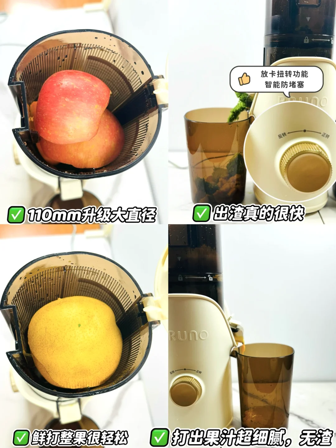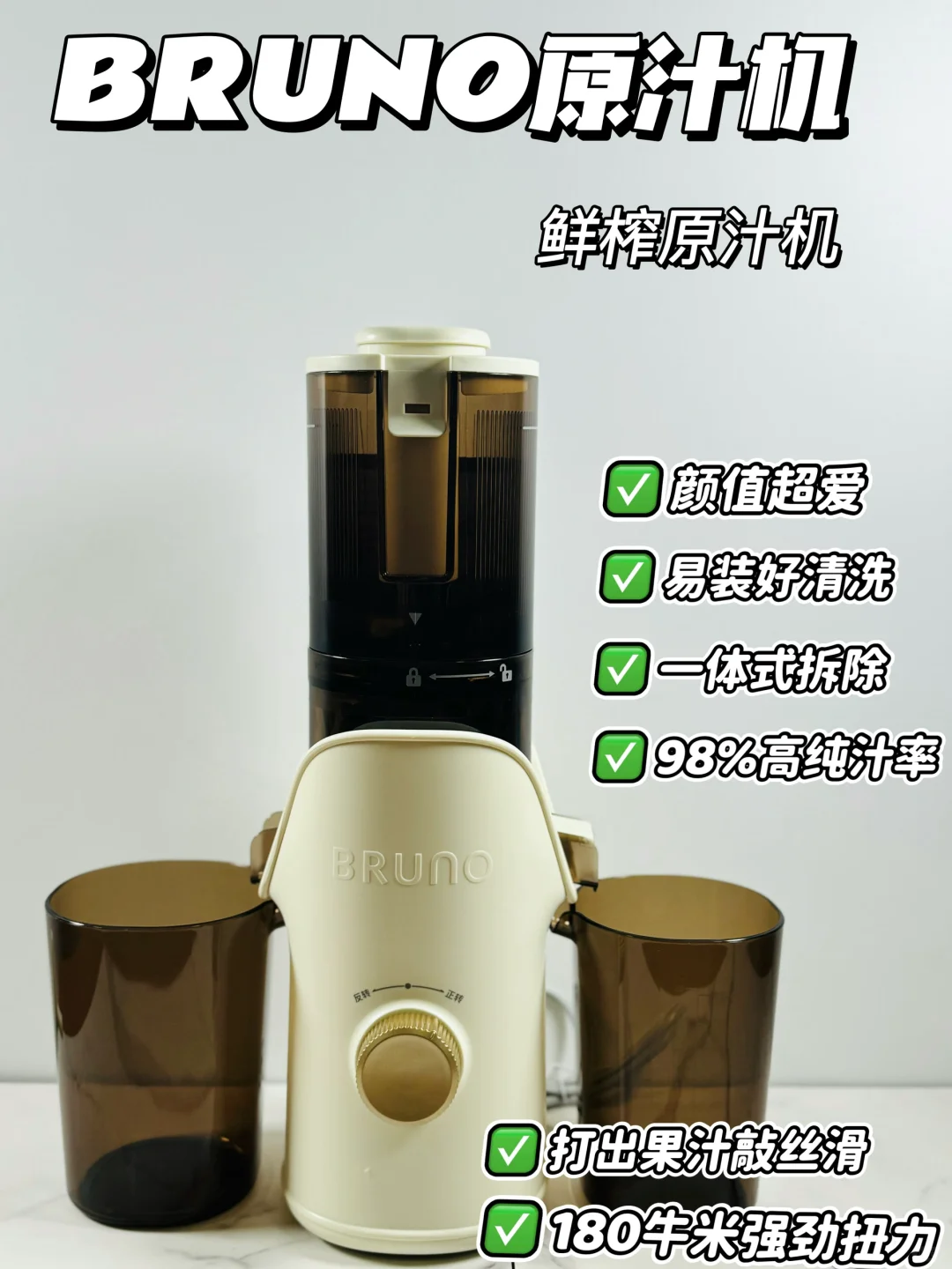 🌈今日给大家分享BRUNO原汁机,这原汁机真的不错,不用过滤,以前喝这些用破壁机榨需要过滤姜黄,甜菜这些我总是会把手衣服弄得都是颜色,现在有这原汁机好了,自带三层过滤,直接喝无渣😊。180牛米强劲扭力,榨汁很快榨汁分离彻底,110mm升级大口径,一整颗大雪梨都可以放进去[点赞R]拆洗也很方便,水冲冲就可以了,关键它这颜值真的长在我的审美线上,真的爱了爱了!