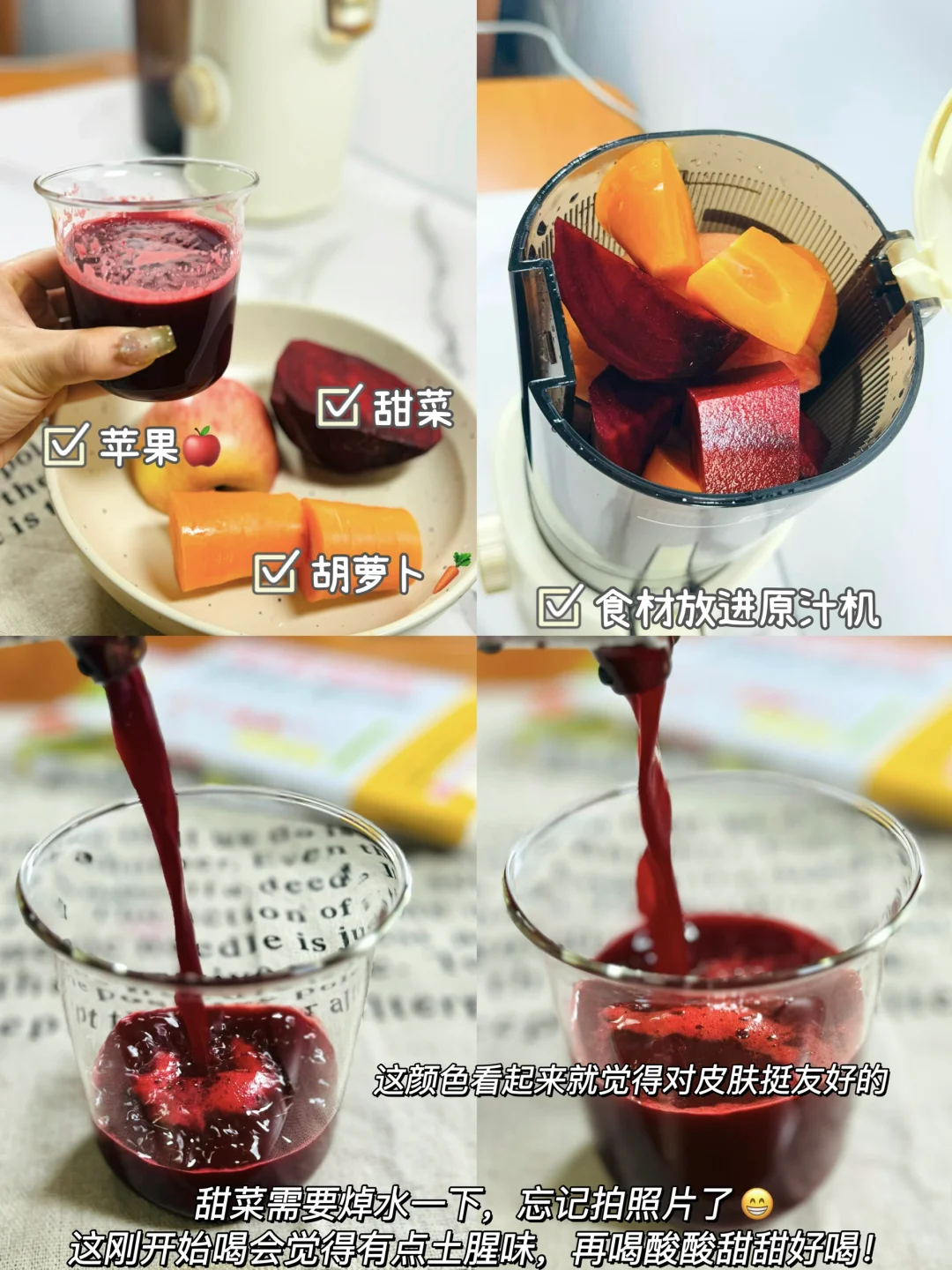 3️⃣甜菜➕苹果🍎➕胡萝卜🥕