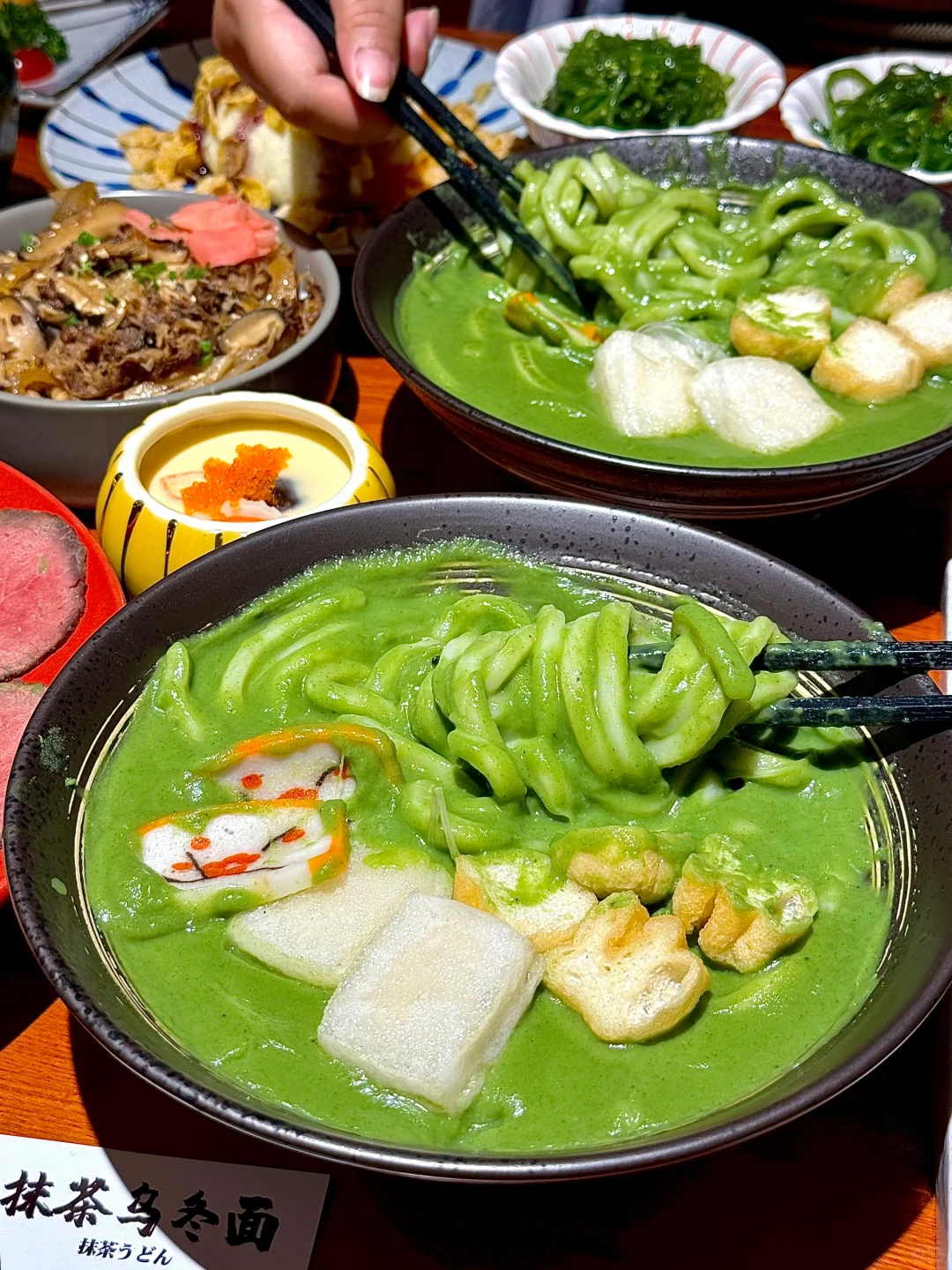 555宁波也有了!!抹茶乌冬😭!还有奶fufu的芝士瀑布一根面…日式定食…好爱🥹!!