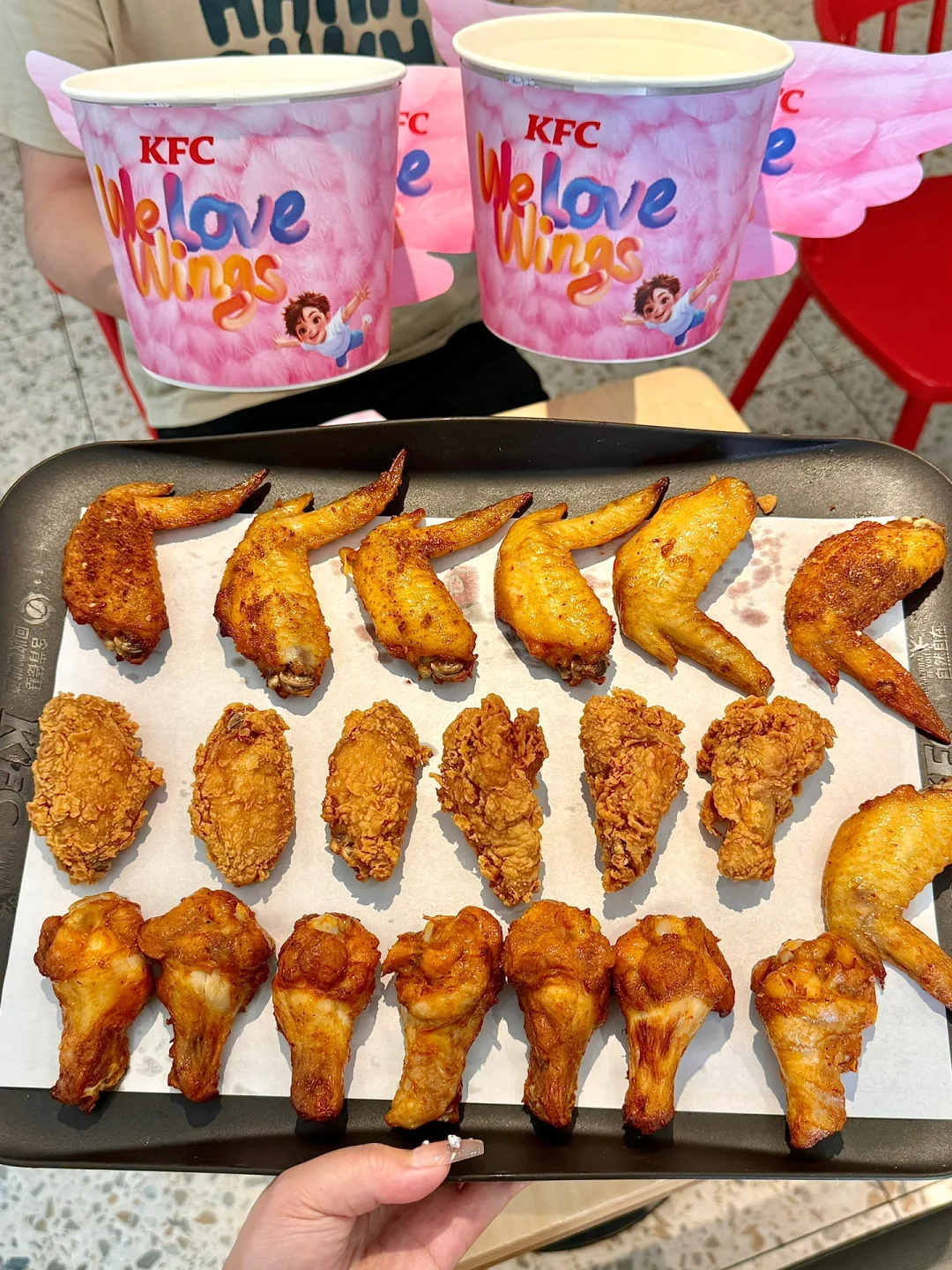 额外➕2r就能🉐双拼十翅桶!!6辣翅/6烤翅+4齐齐哈尔风味!!也太太太划蒜了叭!!巨好吃!!