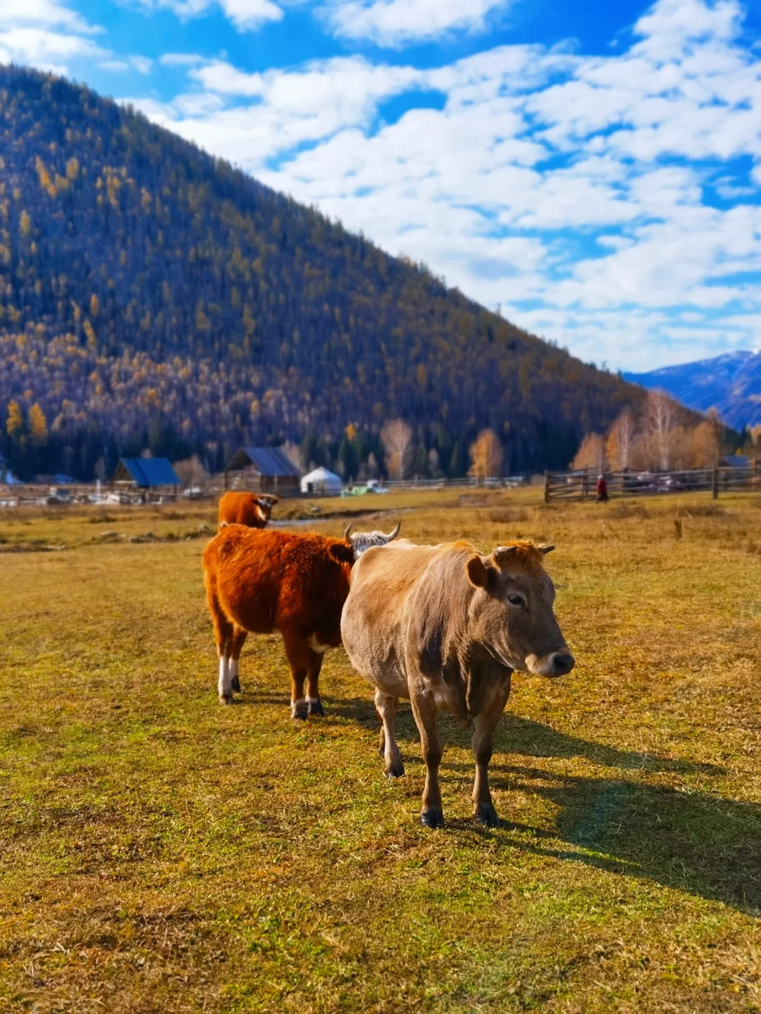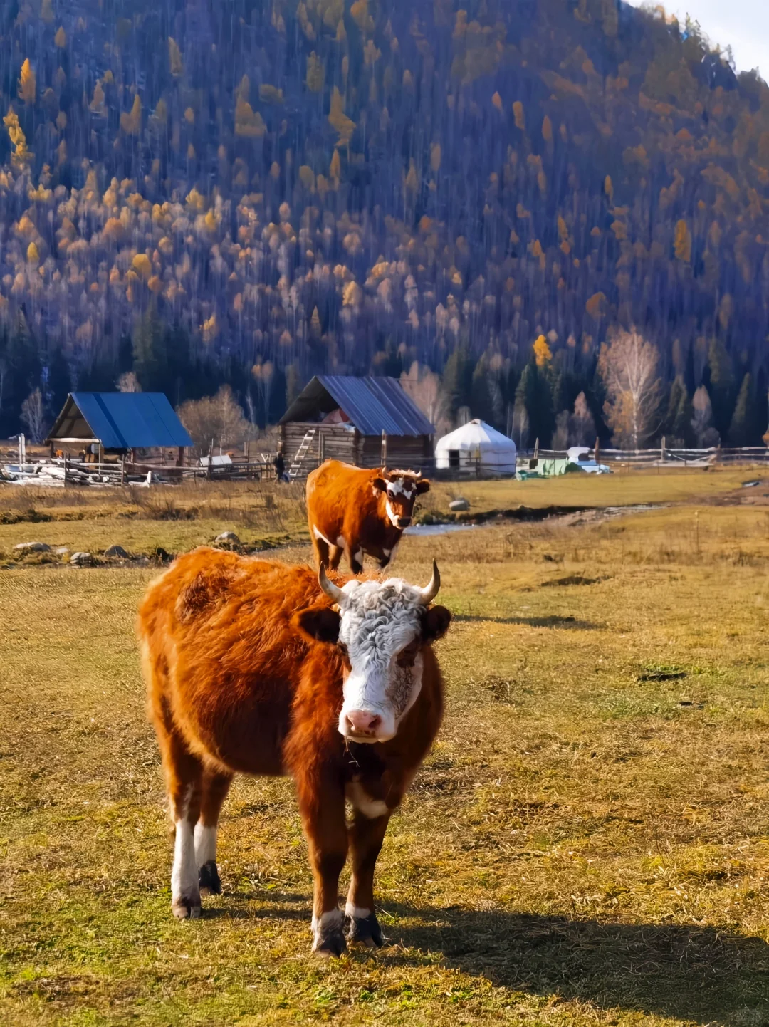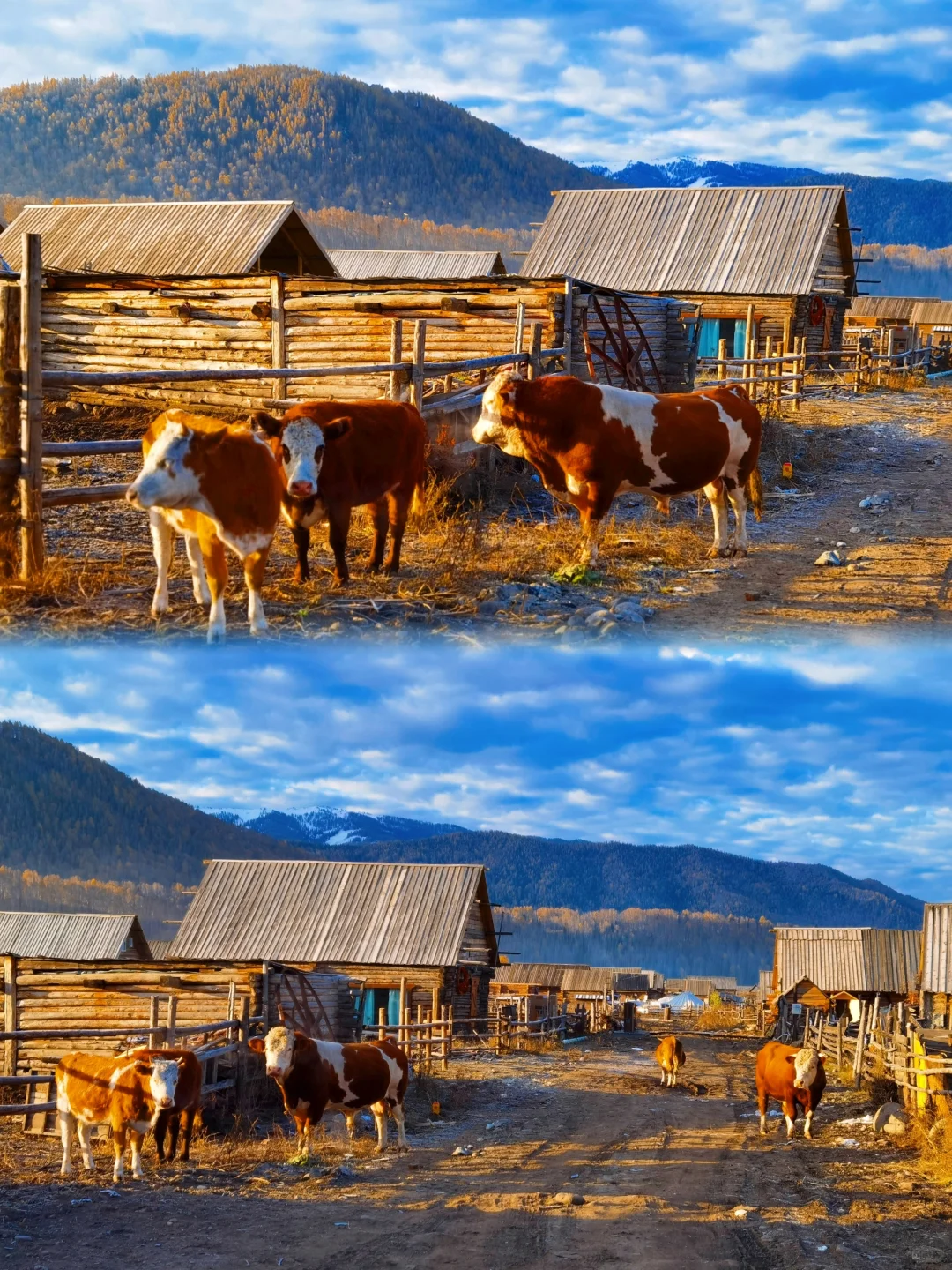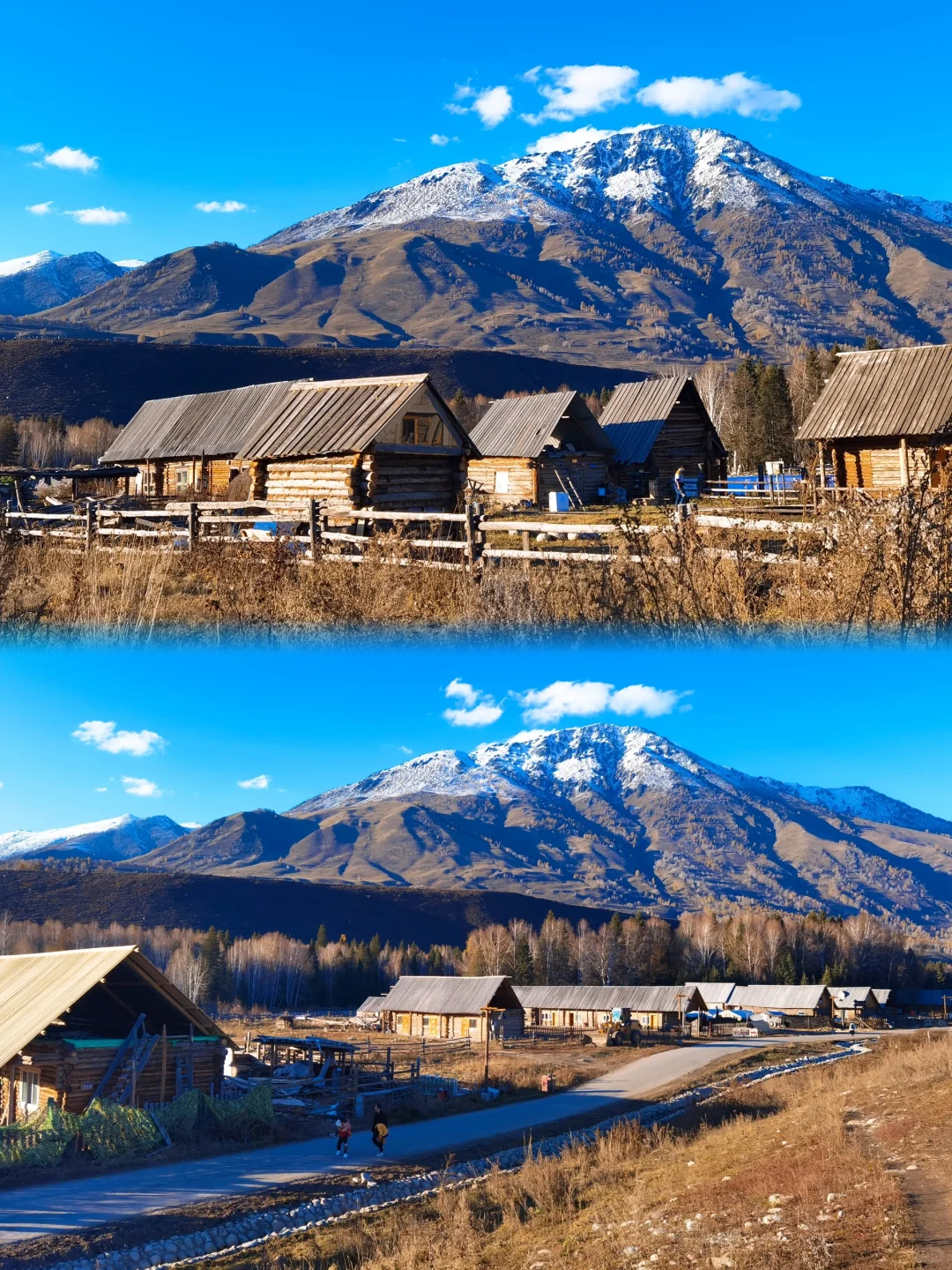 因为如果新疆最美好的夏天在伊犁,那最美的阿勒泰一定是在秋天。 来阿勒泰首推禾木! 直接导航到禾木风景区即可。 建议一定要留一个跨天给禾木,因为只有住在禾木的小木屋你才能体验到完整的禾木。禾木最美的地方不在禾木,而在只能骑马一个小时到达的美丽峰村。 从禾木骑马点策马奔腾,翻过小山后就是美丽峰村,牧民家的羊肉串和奶茶真的太绝了。 夜晚在禾木看着满天星斗,瞬间穿越到北欧