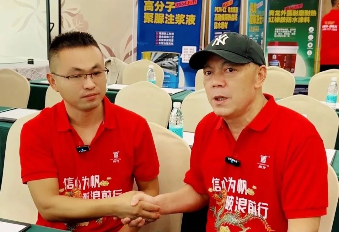 在青龙家装防水八周年庆的间隙,宋董事长与来自四川的新加盟商陈总有这样一段真诚交流:陈总说自己是今年3月正式拿货加盟,但早在两年前就用过青龙产品。当时他同时试用了五家厂家的材料,结果四家施工后不久就出现问题——起皮、脱落,厂方却迟迟给不出满意解决方案,只能以返材、推诿搪塞。唯独青龙的红橡胶表现稳定,屋面补漏效果显著,这才让他下定决心回归并做到更深入的合作。