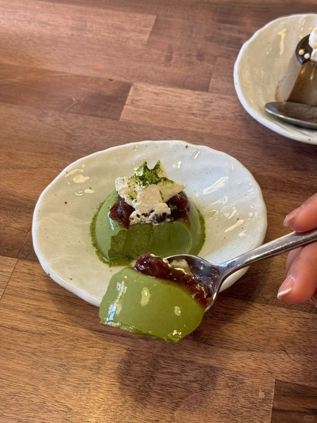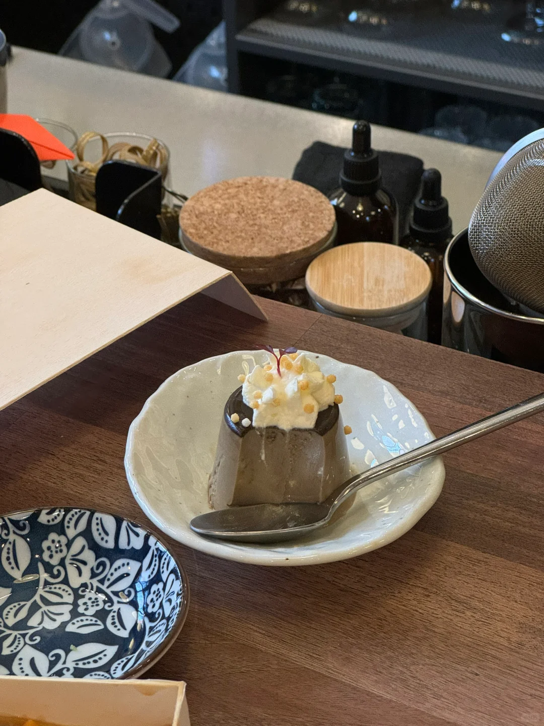 covent garden的MOTO作为sake bar其实很出名啦~ 下午没有鸡尾酒去试了试便当🍱和布丁! 抹茶搭配红豆🫘焙茶搭配了微咸的炒米[喝奶茶R] 🍵焙茶的味道比抹茶浓郁一些!!