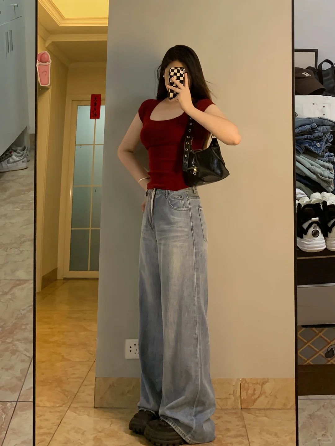 大方领还怪显瘦! 正肩➕阔腿裤辣飞飞啦