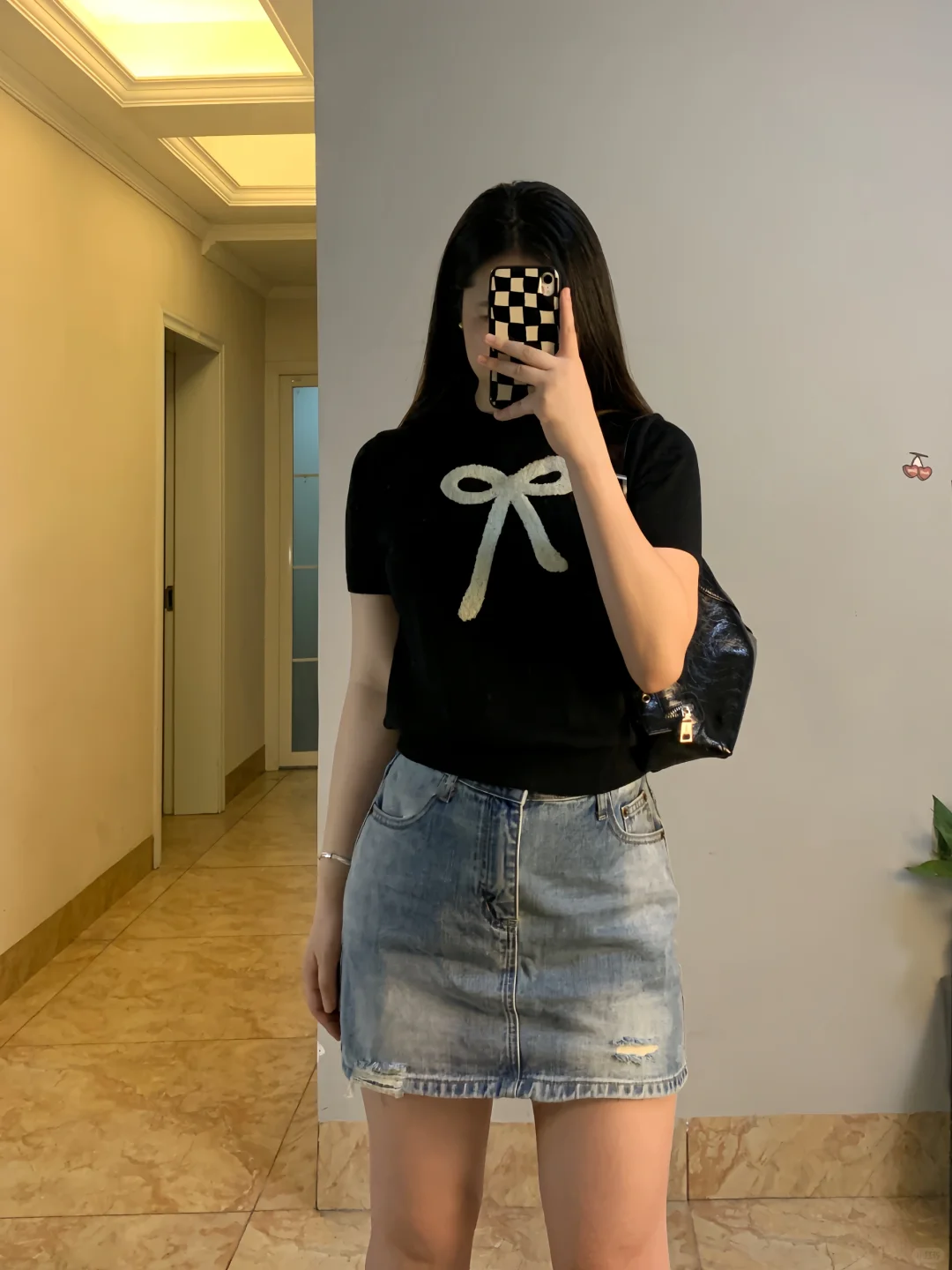 简单分享显瘦穿搭✌️ 针织蝴蝶结🎀➕牛仔短裤元气活力 夏天女孩子们也要美美的穿哦!!!!