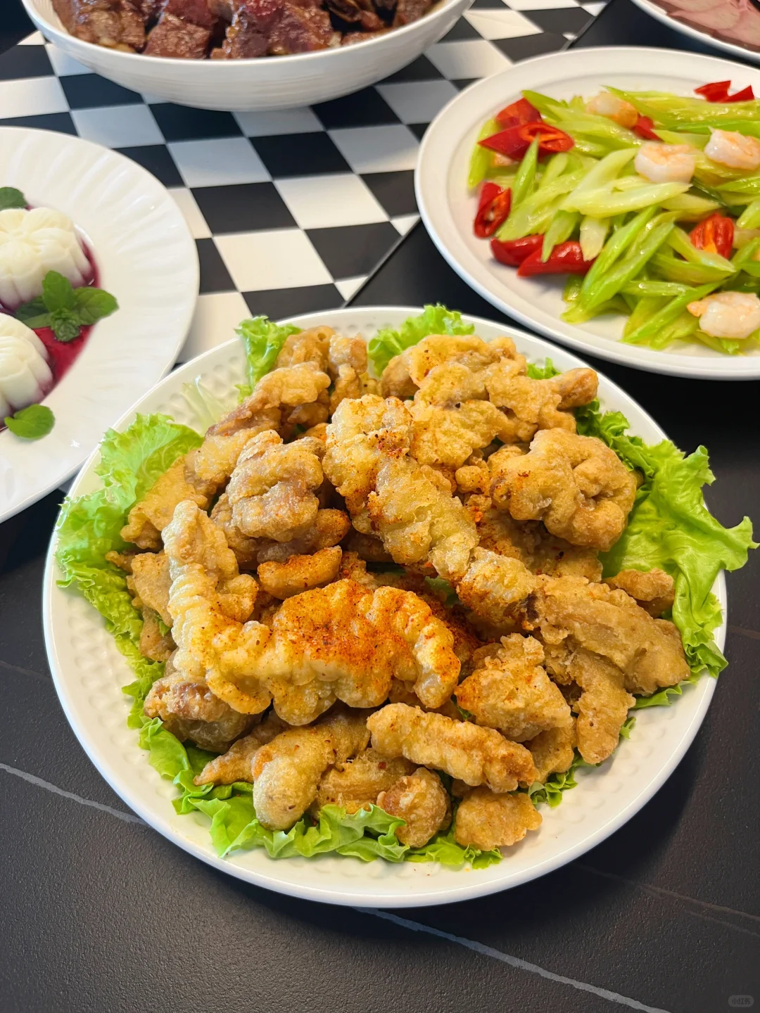 今天满满一桌菜颇受好评,最近在看《灿烂的花园》生活综艺,很想跟大家推荐这个节目里同款的椒麻小酥肉和我心心念念的香酥炸鸡,小酥肉选用的是梅花肉口感会比纯瘦肉更好一些,买不到梅花肉用五花肉也可以~