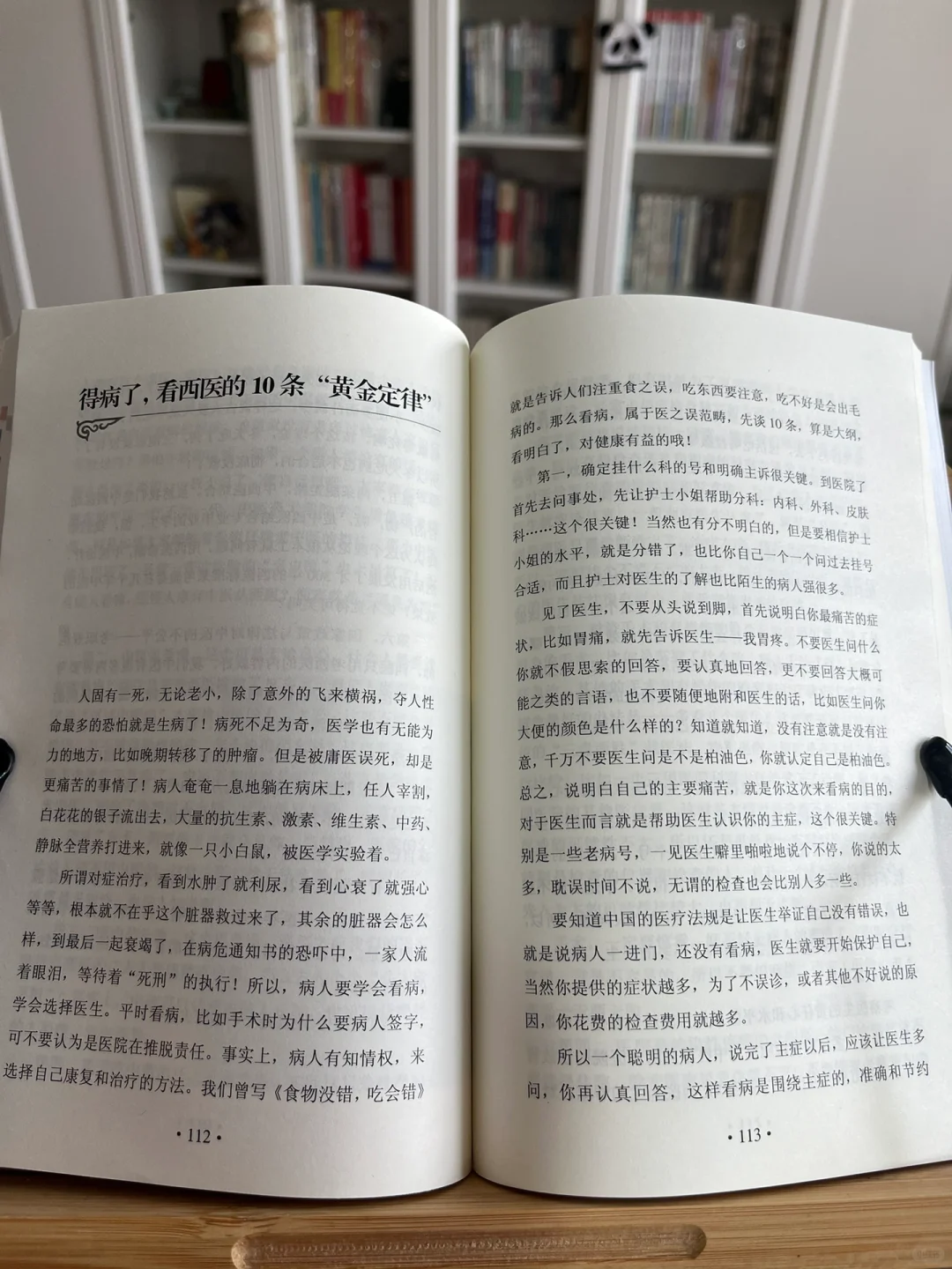 得病了,看西医的10条“黄金定律”这一章,告诉我们病人要学会看病,学会选择医生。1、确定挂什么科的号和明确主诉很关键。2、选择医生,名气在其次,先看医生的责任心。3、对待手术和有损伤的检查要慎重。4、医院是传染性疾病的介绍所,能门诊治疗就不要选择住院,除非医生说非住院不可。5、特别提醒看眼科和牙科这类病时,因为容易出血所以特别要去消毒严格的医院——远离艾滋病等血液病。6、吃药前,请仔细阅读说明书,药没有吃完,说明书不要轻易丢掉。7、感冒了,打吊针输液不是万能的。抗生素打进去、对人体是有伤害的。对待任何疾病原则是:能吃药搞定就不打针,能打肌肉针搞定就不输液。8、看病要及时,体检更要准时和重视。9、得病了,有了诊断书时,最好不要拿着诊断书上网自己搜。10、千万不要对医生说,钱不是问题,只要能治好之类的话。