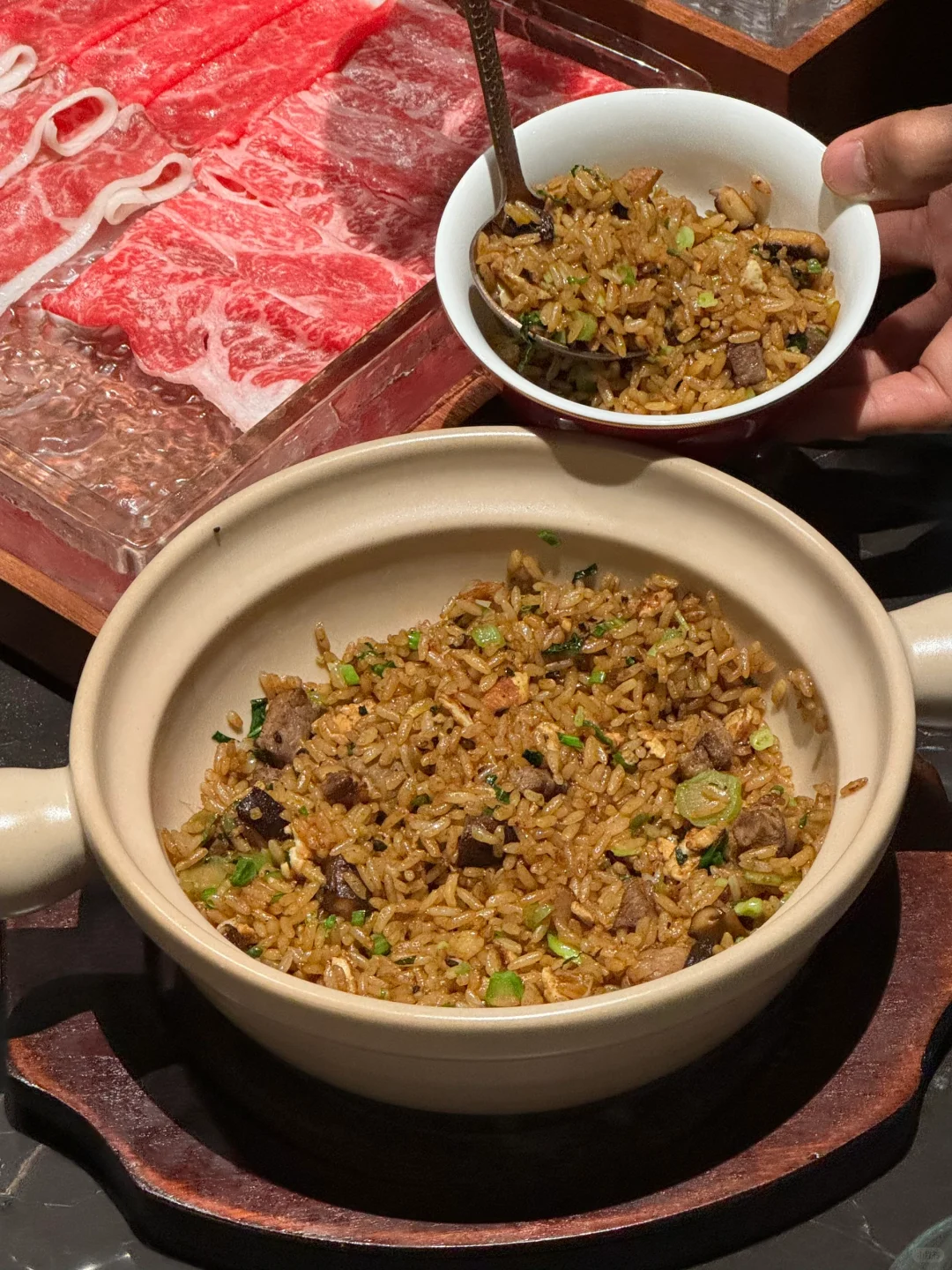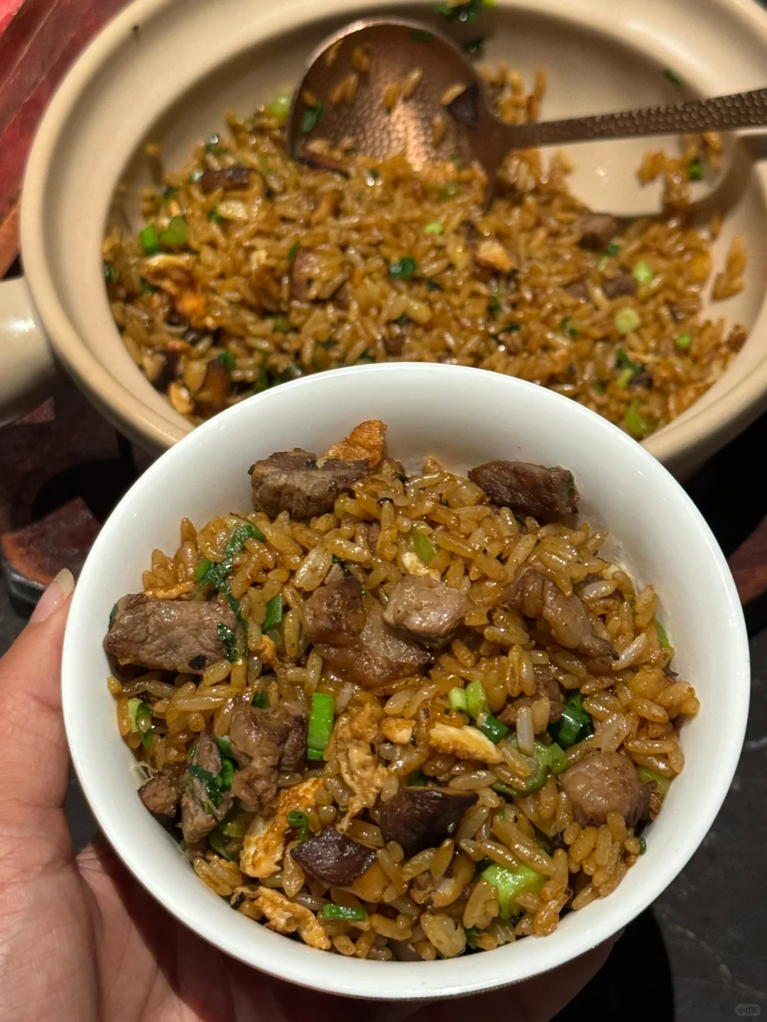 花小钱装大杯在北京彻底悟了[抓狂R] 过来约会谈事也是很有格调的选择!! 黑松露和牛炒饭必点!现场铁板炒制!米粒颗粒分明! 浓郁的菌菇香气🍄牛肉粒给的毫不含糊👍🏻巨多!!