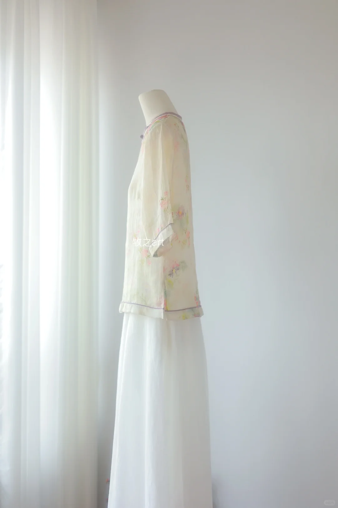 慢下来的时候 风格随心,松弛随行 高支数纯苎麻面料 天然植物纤维,找回最舒适的状态~ 无麻不夏,干爽透气的面料特点,让盛夏更加舒凉 搭配一件苎麻白裙,简单干净 -