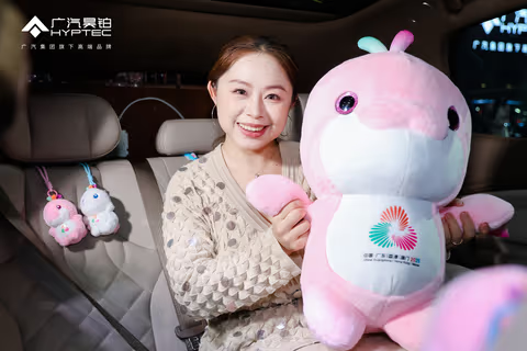 最让观众驻足的是车内空间的创意呈现。两只超大尺寸的大湾鸡玩偶舒适地坐在后排座椅上,生动直观地展现了昊铂HT的宽敞空间。得益于2935mm的超长轴距,即便同时容纳两个大型玩偶,后排空间依然显得游刃有余。这个有趣的场景引发了不少观众会心一笑,有观众调侃道:"这空间足够开个大湾鸡茶话会了!"