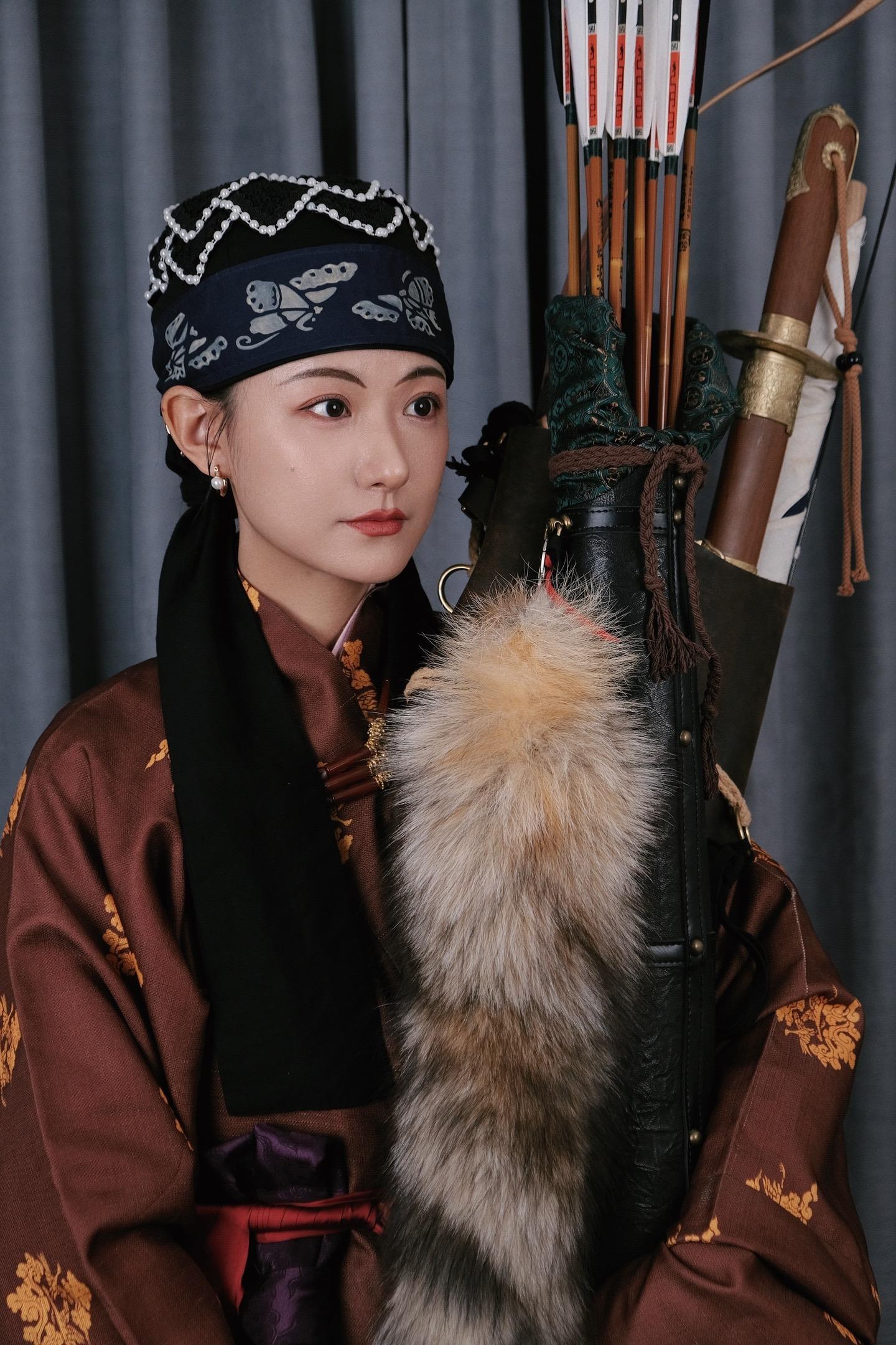 金代·齐国王墓|花珠冠。春节的时候就做好的花珠冠和垂脚幞头,然后觉得要不把腰带也做了,接着把腰带做好了。又觉得差坠香盒,项链也不行,又开始弄,拖到现在才终于准备好拍了照片。 出镜