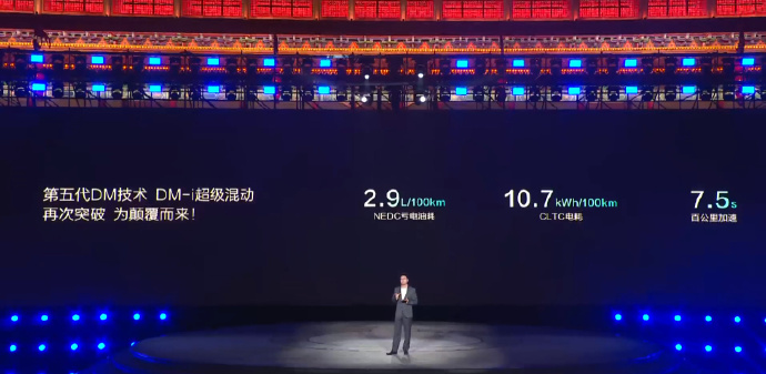 比亚迪第五代DM技术发布,2.9L/100KM亏电油耗,10.7kWh/100KM电耗,7.5s百公里加速,第五代DM技术综合续航2100公里,并且发布即量产,秦L DM-i、海豹06 DM-i同时搭载上市。