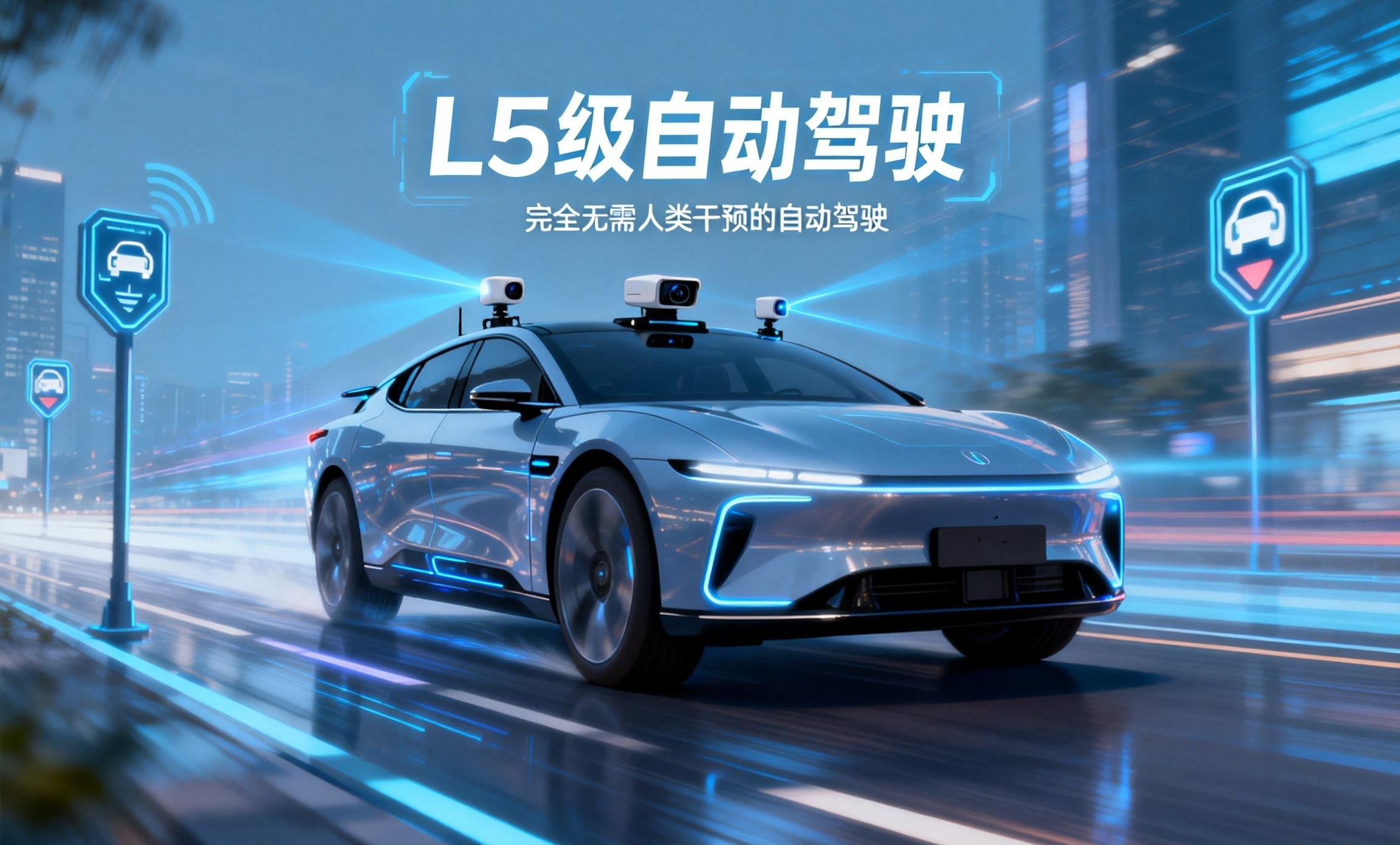 · 形象比喻:你的车变成了一个无所不能、经验丰富的“老司机机器人”。没有方向盘、没有油门刹车踏板。你上车只需要说一句“去公司”,它就能带你去任何地方,应对任何路况和天气。你可以在车里开会、睡觉、看电影——旅程的全部责任由系统承担。· 核心特征:在任何时间、任何地点、任何条件下,实现完全自动驾驶,人类彻底成为乘客。
