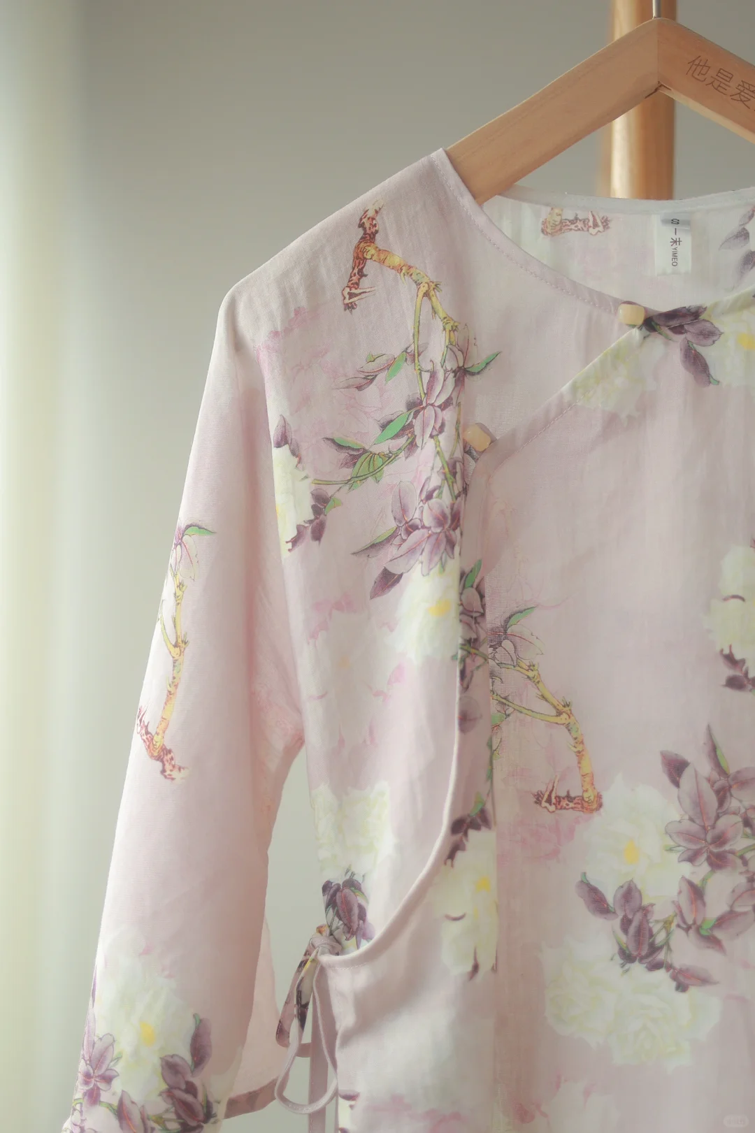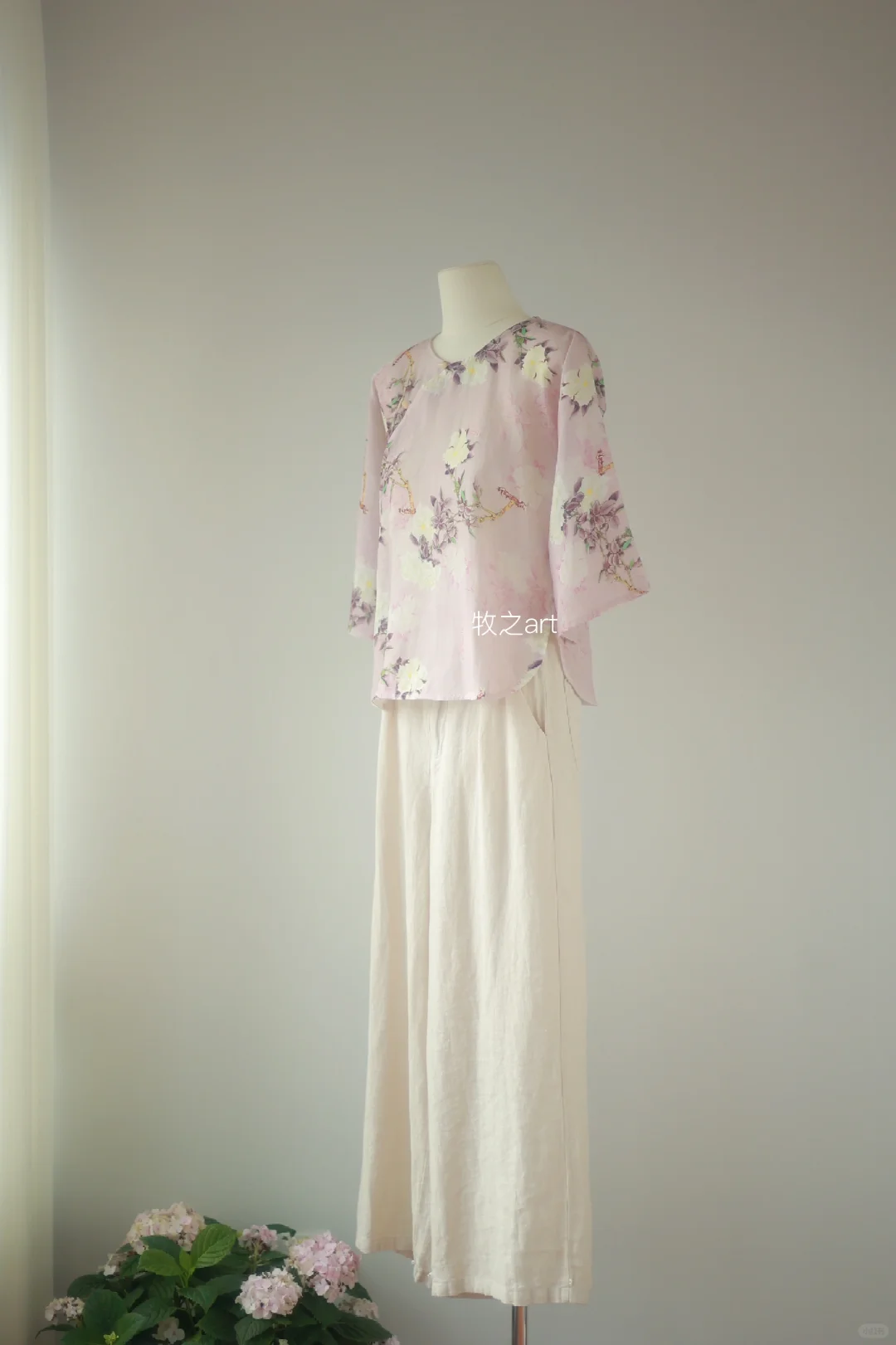 苎麻面料是一种天然植物纤维面料 无麻不夏,透气散热,真的好舒服 版型受民国时期影响,全开襟倒大袖 颜色也是温婉的 3️⃣码/现货库存 -