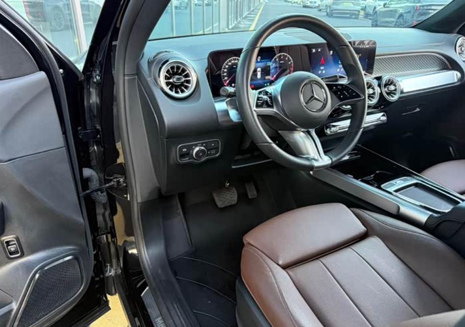 内饰的设计采用上一代车型的设计,一体式的悬浮面板集成了10.25英寸中控触摸屏和10.25英寸液晶仪表盘,搭配炮筒式空调出风口,看上去大气又不失精致感,尤其是打开氛围灯后,格调很高。此外,奔驰GLB的车机功能也很出色,卫星导航、手机互联、语音识别控制、语音连续性识别等功能均有配备。