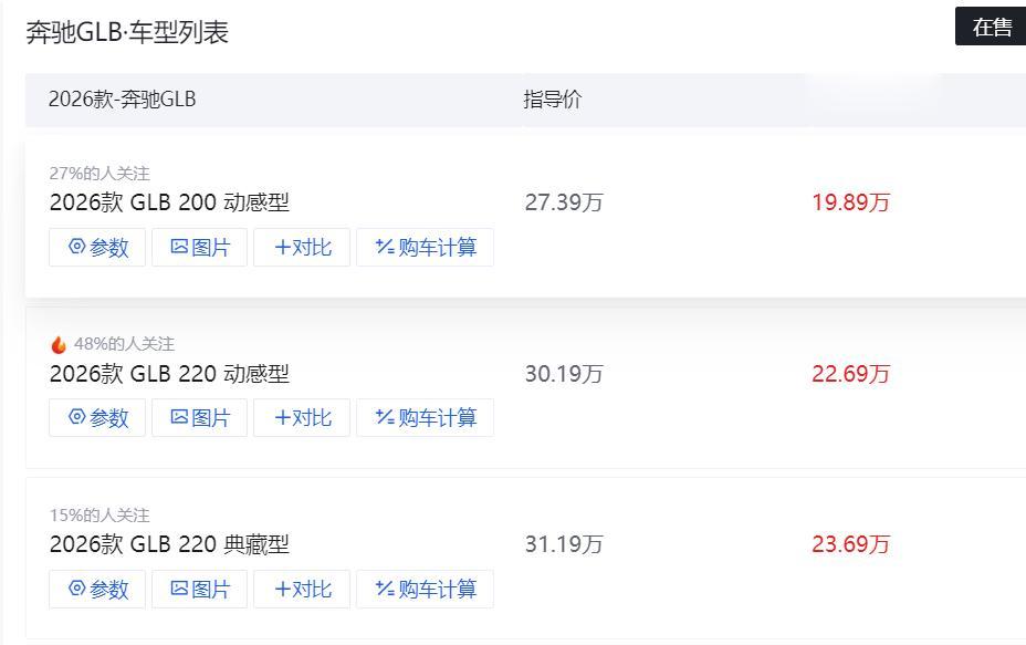 不过,随着房地产时代的落幕,大部分国人的消费能力其实在与日俱增,就拿我来说,算是买房比较晚的,在2020年买的房子,如今六年过去了,房贷基本上换的差不多了。所以,买车的预算越来越多,虽然工资只有十几万,但是买台奔驰C级压力并不大。如果你对于空间要求更大,奔驰GLB也很不错,这款车的售价在部分地区已经跌至19.89万起,顶配落地下来才30万左右,有七座、四驱可选,确实很吸引人。