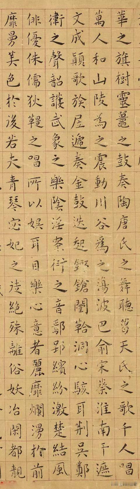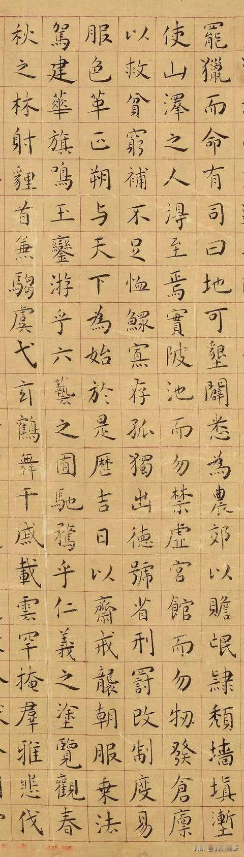 你要的《上林赋》,来了,美吗? 这是明代黄姬水小楷《上林赋》《上林赋》是西汉辞赋家司马相如创作的一篇赋,是《子虚赋》的姊妹篇,历代书法家对于此赋尤为钟爱。而现代网剧《周生如故》中一句“色授魂与,心愉在侧”,则带火了这千古名篇《上林赋》。 黄姬水,明代学者黄省曾之子。明代诗文作家,科举屡次不中。其学书师承于文徵明,且得晋唐笔法,风格清丽俊逸,端庄秀丽,温润典雅。