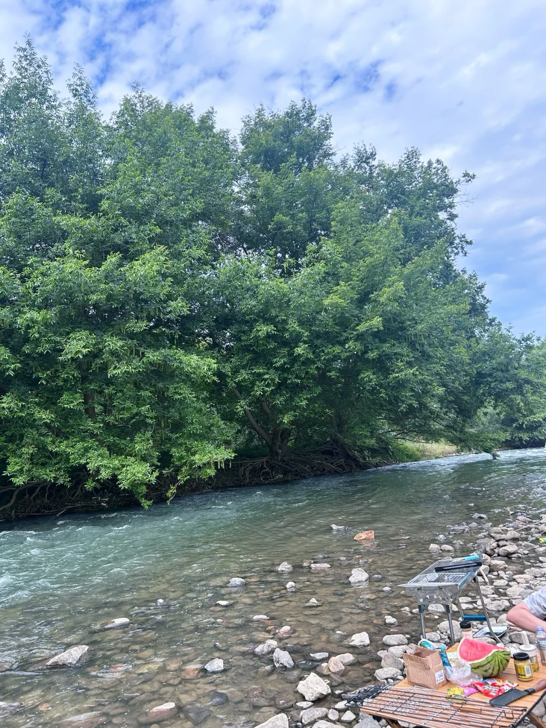 今天中午带上了露营装备,来到了乌象坝玩水,进行了一次快乐的河边野餐。 📍导航:乌象坝水果店,到了后沿路一直开,看到停车场停下来。 👧🏻到河边的时候,这里已经很多人了。拿出装备,煮了水泡了龙井,舰哥煮了泡面,我们一起美美的用了餐 🌸一旁不少人在水边打麻将,玩飞行棋,还有不少家长带着娃在浅水区摸鱼抓螃蟹,夏天的快乐太简单了。 ❤️期待下次打卡安吉新的玩水地。