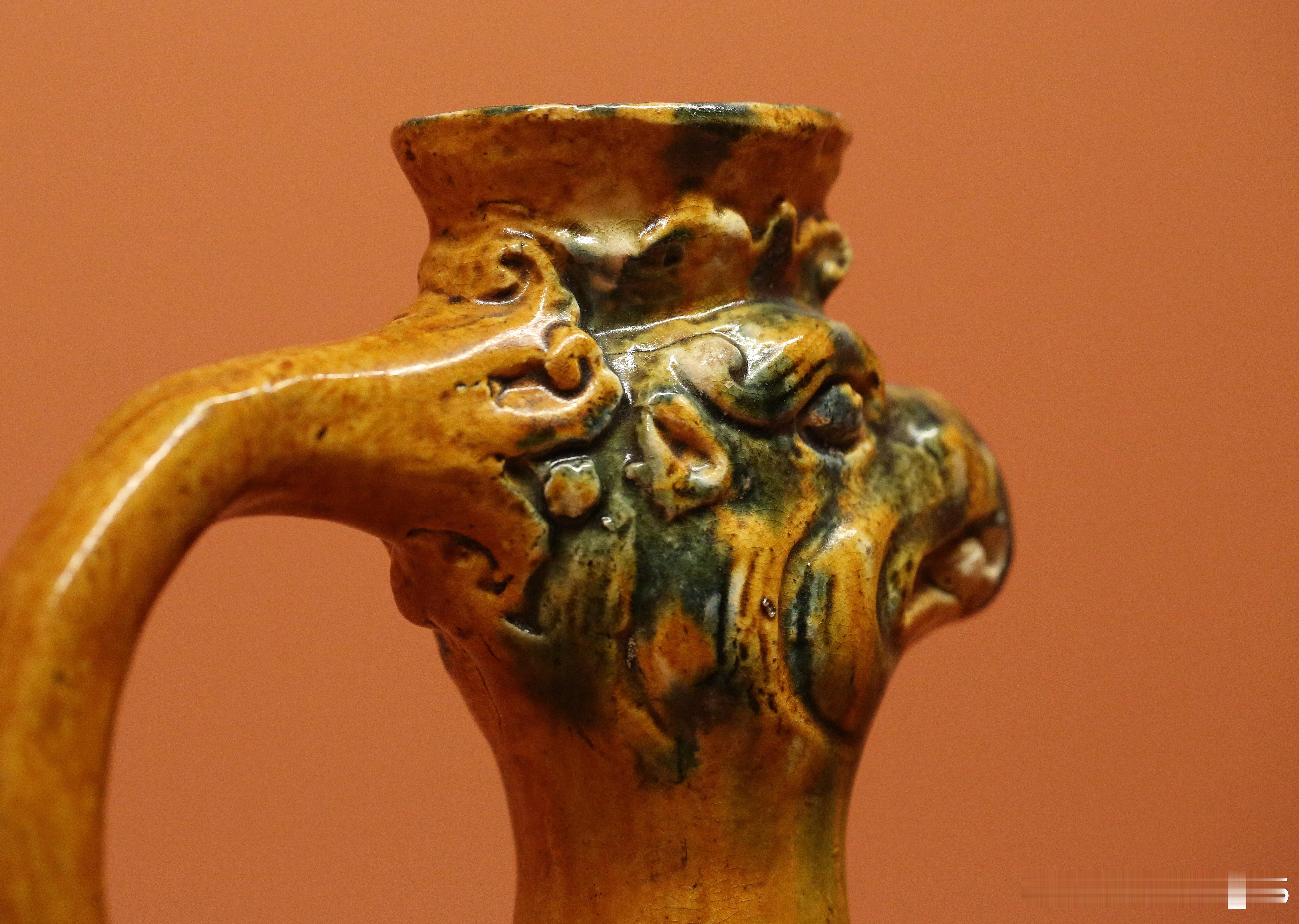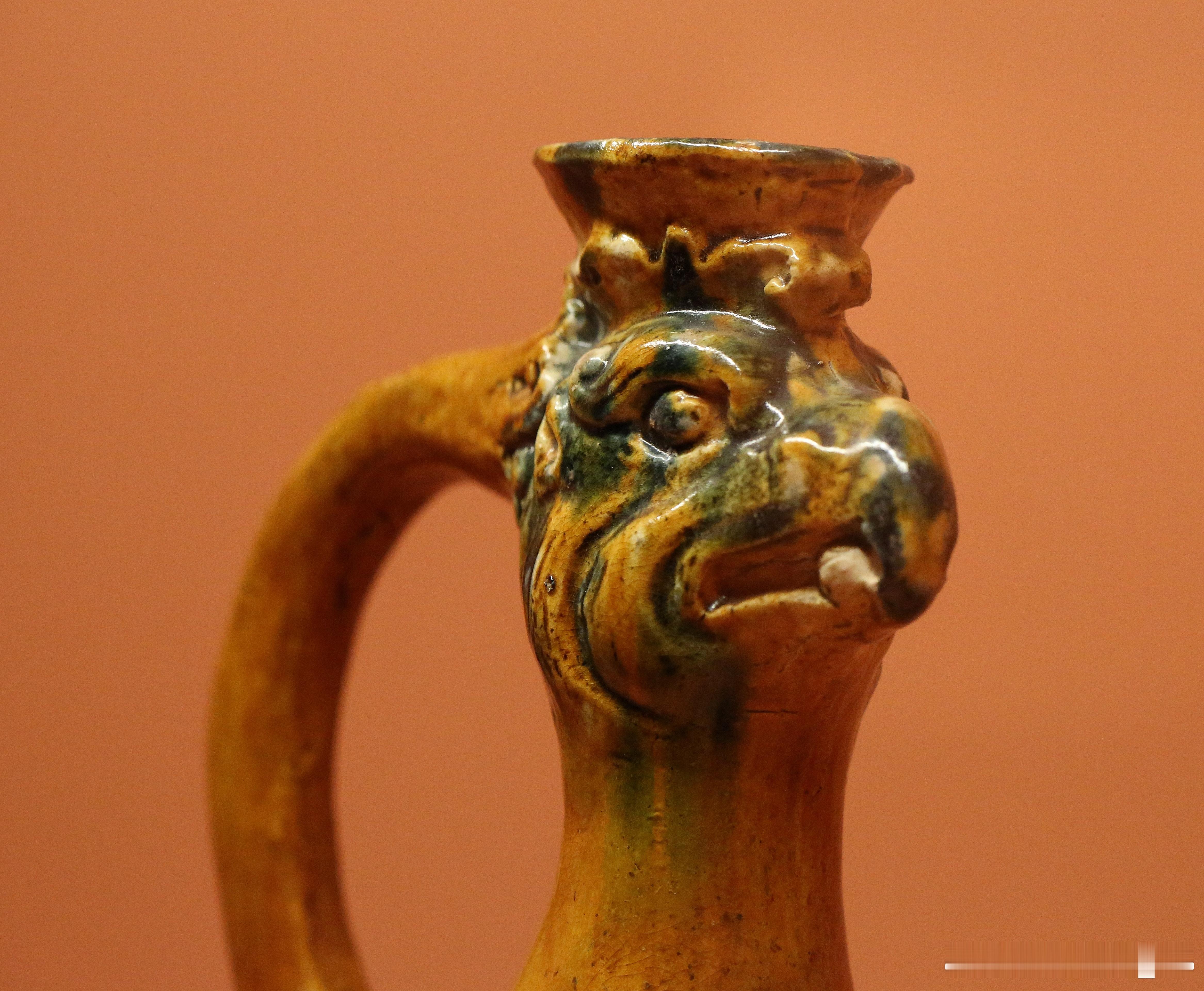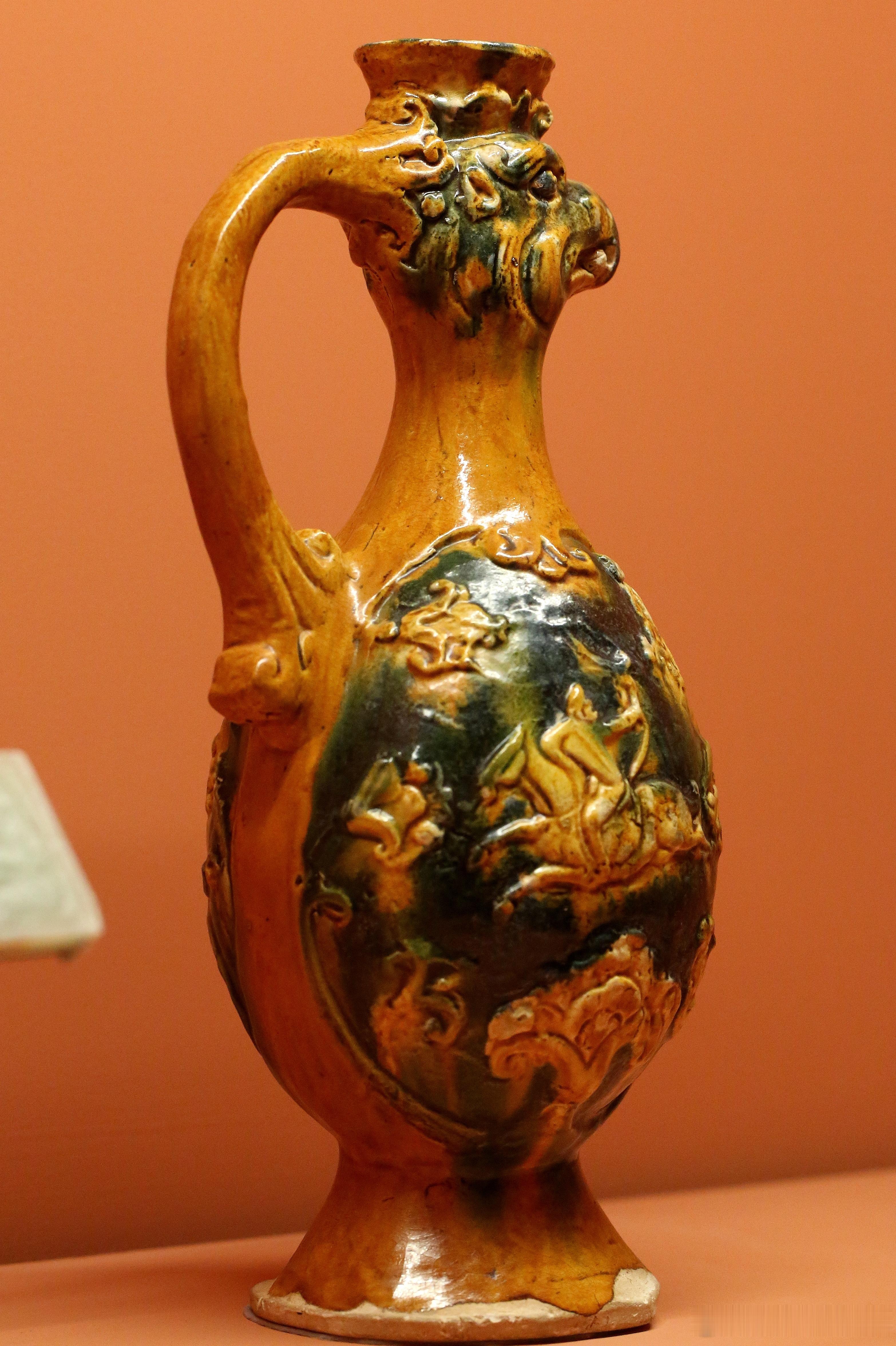 三彩狩猎纹凤首执壶唐(公元618-907年)陕西唐三彩艺术博物馆藏中西方文化交流