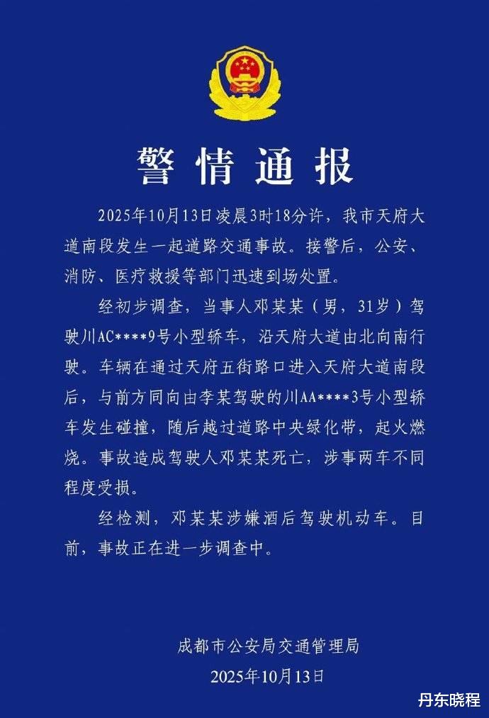 这是小米汽车2025年内发生的第二起车辆碰撞起火导致车毁人亡的事故。