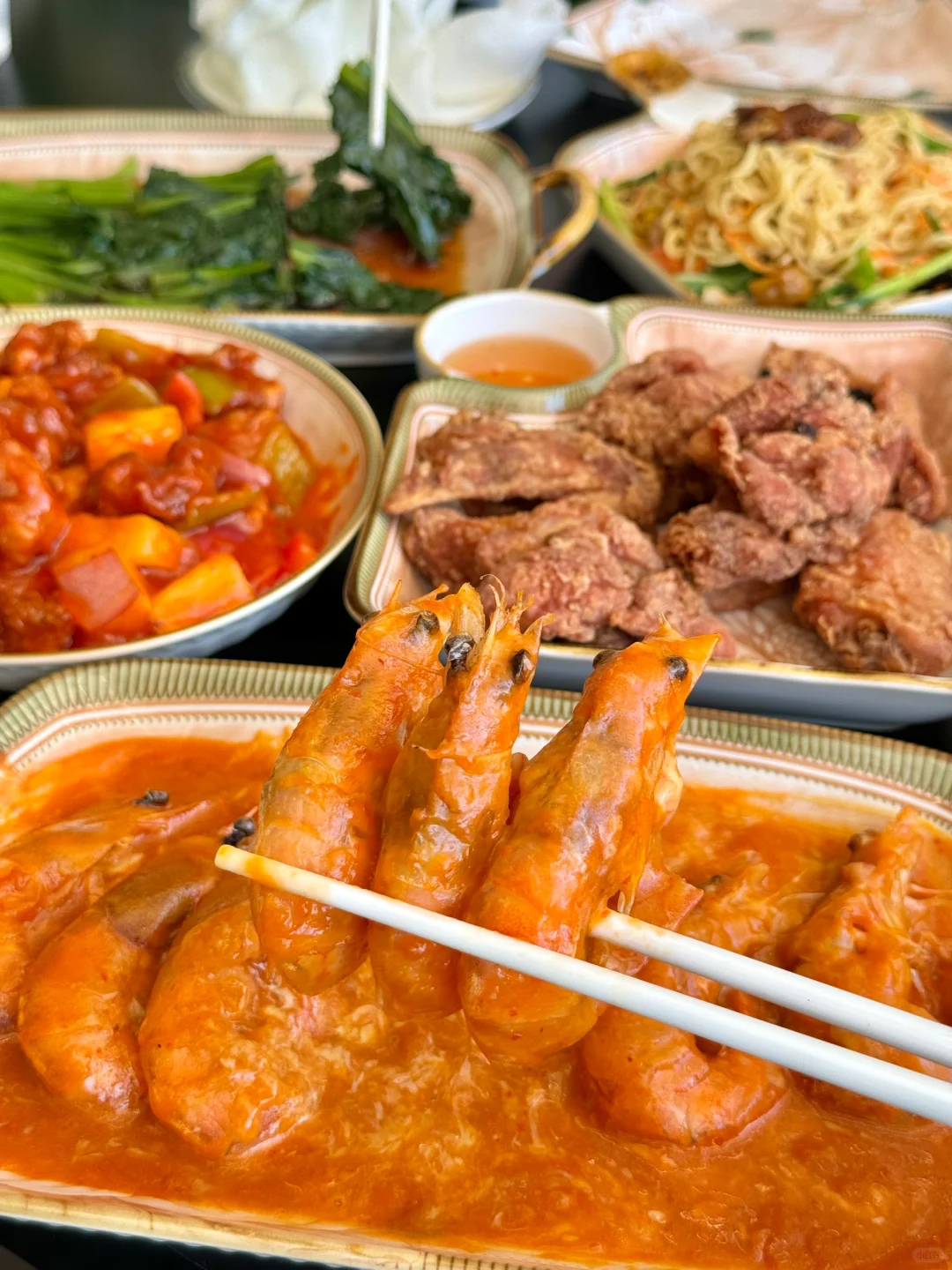 是新加坡菜!!呜呜呜田鸡粥也太鲜了叭[哭惹R]还有虾酱鸡翅…板栗猪脚炒面…辣椒虾🦐…点了好多没一个踩雷的!!